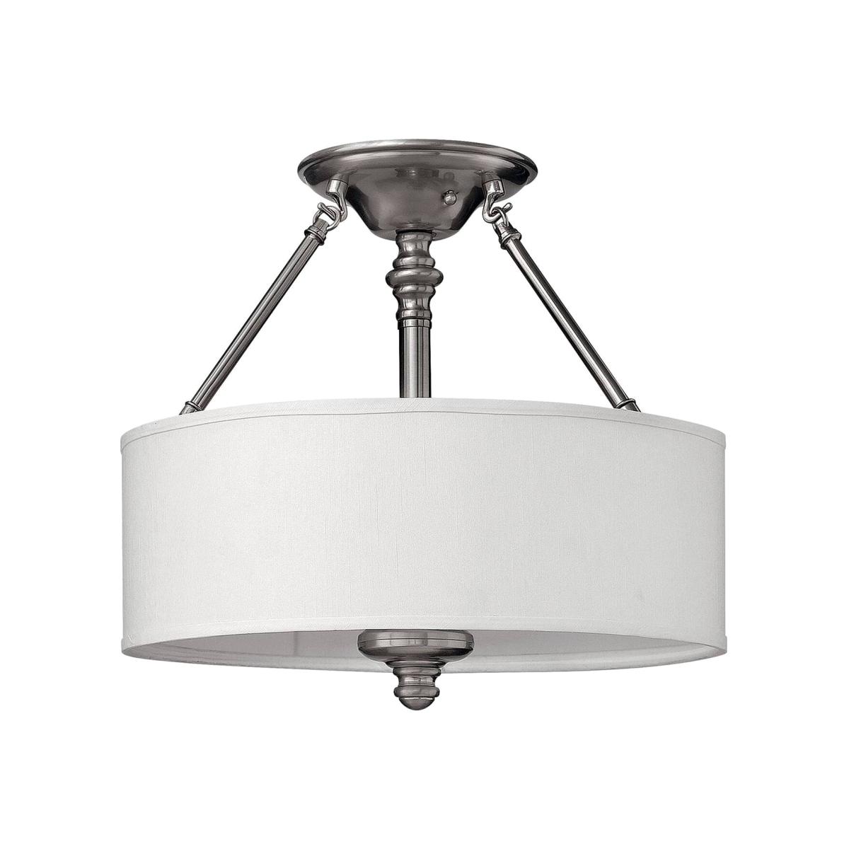 Sussex 3 Light Semi Flush Ceiling Light Brushed Nickel, E27 - Brushed Nickel