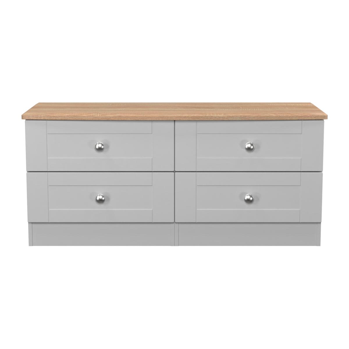 A large 4 drawer bed box. A Perfect storage solution for any room (not just the end of your bed). Could also be used as a low level TVMedia stand. Wood grain effect, panelled design, recessed fronts, contrasting wood top and chrome handles, the Sussex Range is a beautifully elegant collection. With this range you have the freedom to choose from a wide range of furniture configurations, allowing you to create the perfect combination to optimise your storage space. All our furniture is made in the United Kingdom, to the highest quality. It is delivered direct to your location of choice by one of our two man delivery teams, and comes fully assembled - Please Note that any handles or legs may be removed durning transit to avoid the risk of damage.