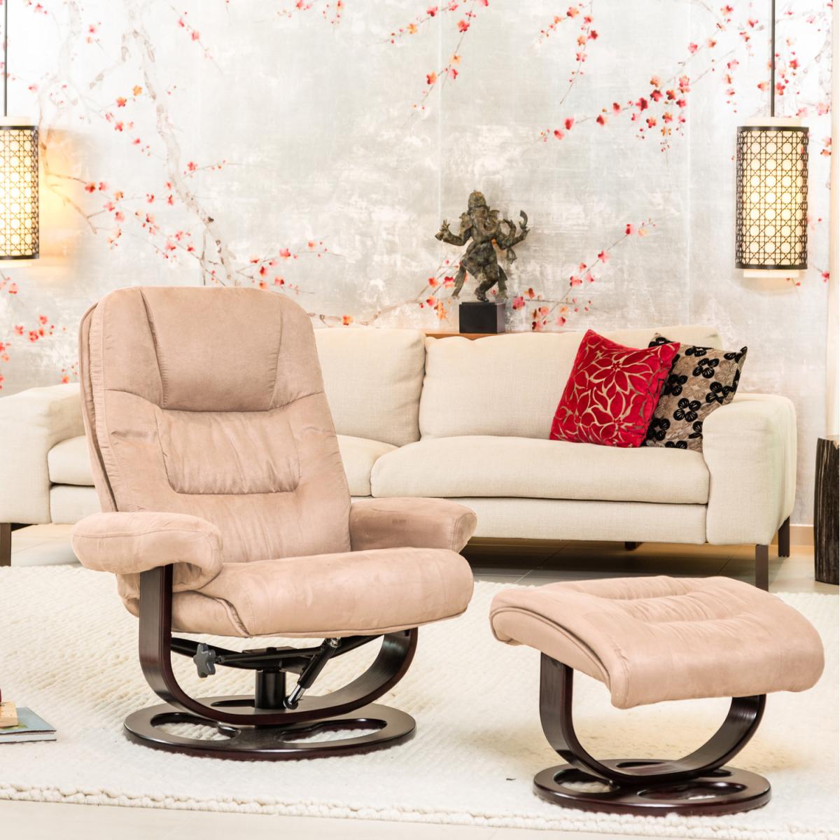 The Sutherland Swivel Recliner is the perfect way to relax after a busy day. The chair boasts an easy to use swivel function, allowing the chair to rotate 360 degrees, and a manually operate recline function. The chair is constructed from a solid hardwood frame with the seating and back foam filled for comfort. The chair is covered in a strong, easy to clean microfibre fabric which gives a faux suede effect. The chair also boasts integrated massage points on the seat, lower back and upper back which can be used either independently or together over a variety of intensity settings to give 27 different options.