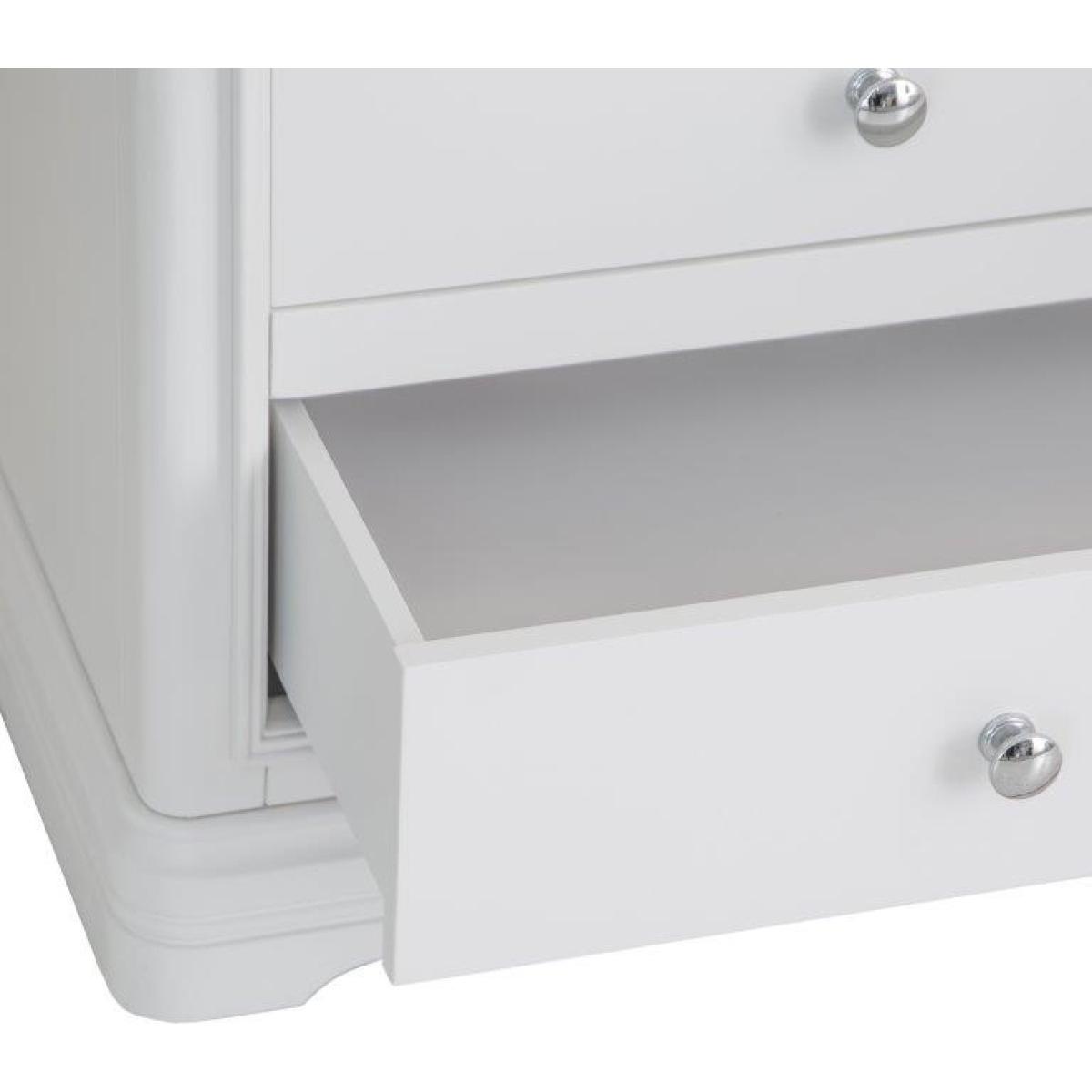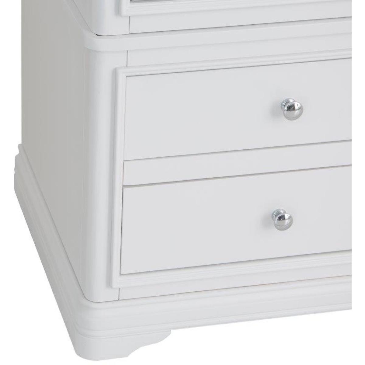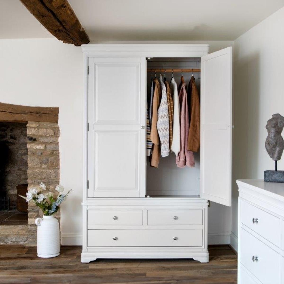 I love this white wardrobe for its clean, streamlined look that works well in both traditional and contemporary interiors. Its crisp colour makes it a versatile choice for bright, airy bedrooms or even eclectic spaces where it can serve as a fresh focal point. To style it effectively, consider pairing it with soft, neutral bedding or colourful accessories to add personality, and keep surrounding decor minimal to highlight its sleek design. Practical tip: utilise the spacious drawers at the bottom for additional storage of essentials or smaller items, helping to keep your space organised and clutter-free.