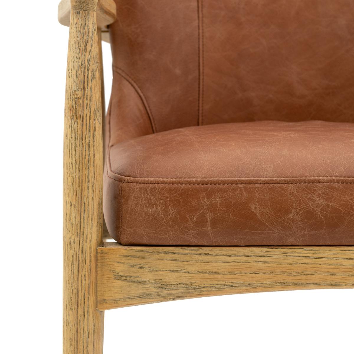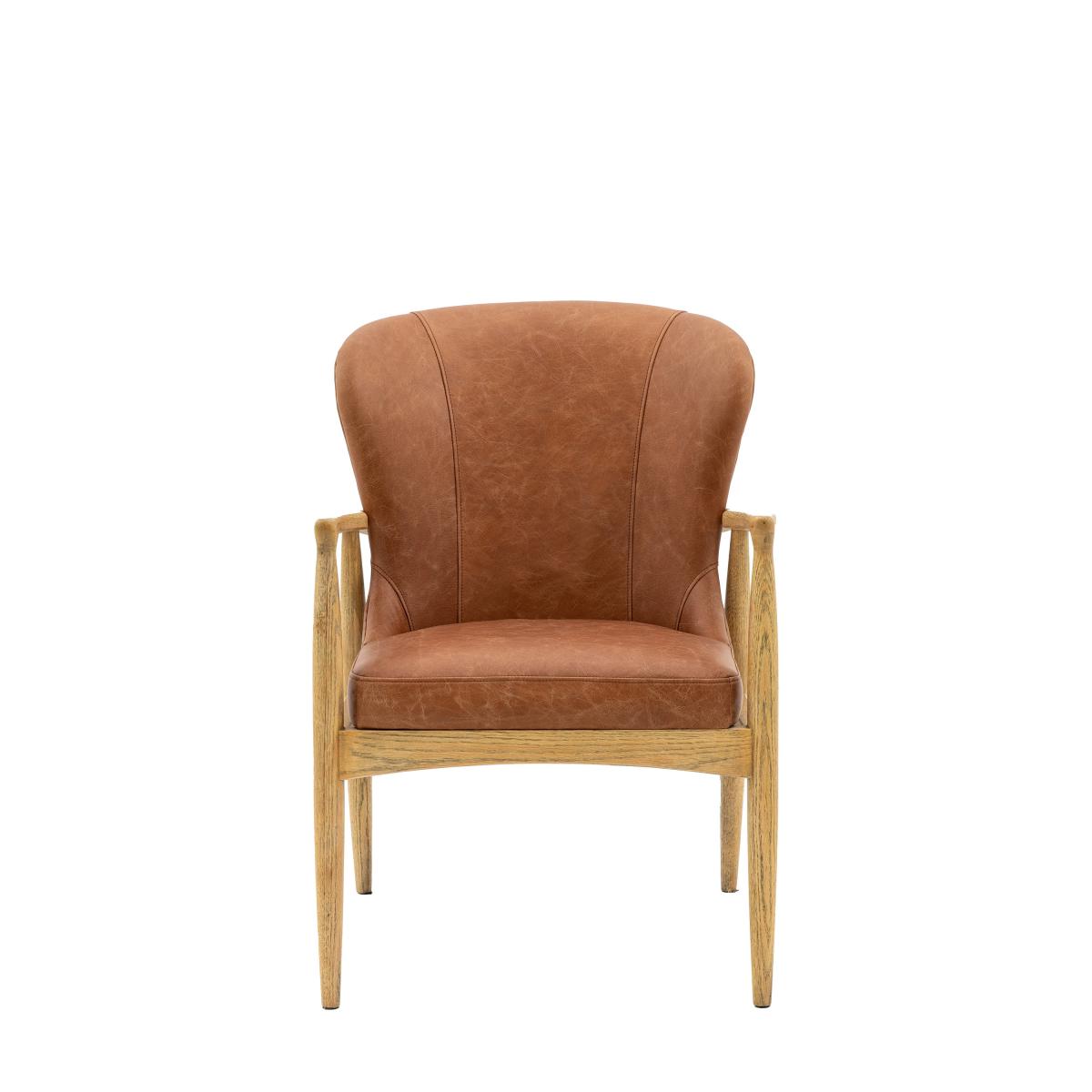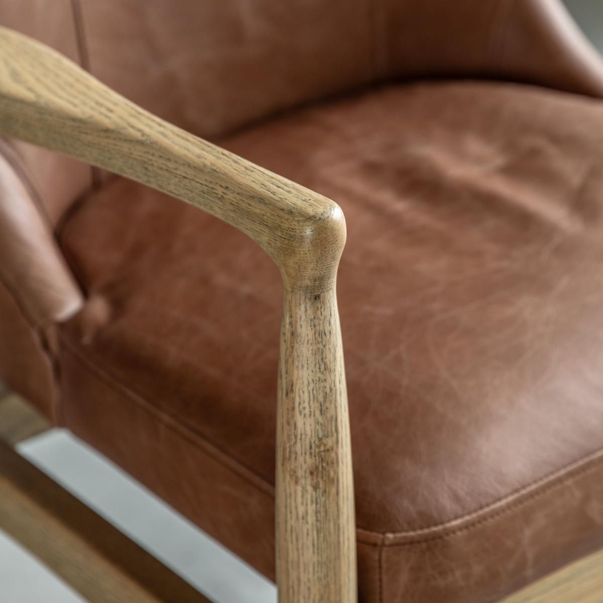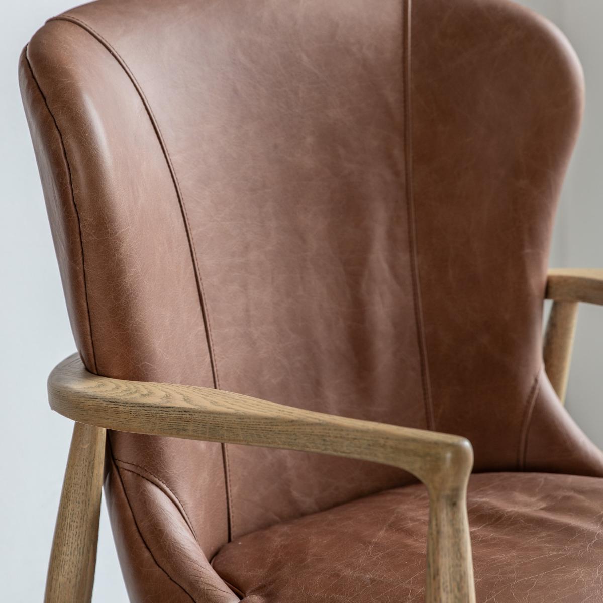 * Strong Wooden Frame* Vintage brown leather* Padding for extra comfort Elevate your home with the sophisticated Sutton Accent Armchair from Cedar & Sage. Its strong wooden frame supports the luxurious vintage-style brown leather upholstery, creating a timeless and inviting look. Designed for ultimate comfort, the fully padded seat and backrest make it a cosy spot to unwind. The blend of rich textures and classic materials makes this armchair the perfect addition to any space, whether you're looking for a retro accent or a relaxing retreat.