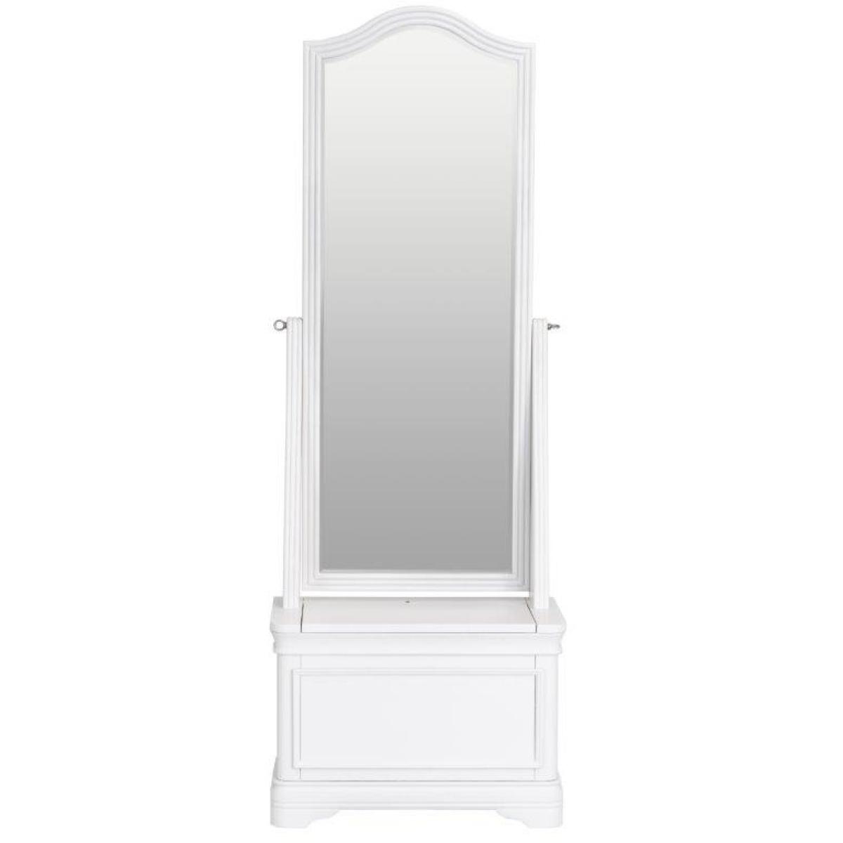 This sophisticated Sutton Cheval Mirror is in a soft white with rounded corners. Features a flip top storage trunk and can pivot for desired angle on the mirror. This range is lovingly crafted for a little something special. Key Features:. *Light assembly required. *Flip top storage Trunk *Able to Pivot for desired angle on the Mirror *Designed for a modern and convient Storage solution *Colour - White Dimensions:. *Height: 180cm *Width: 65cm *Depth: 35cm *Weight 23kg All screens vary in colour reproduction and whilst every effort has been made to display the colour as accurately as possible it is for guidance only.