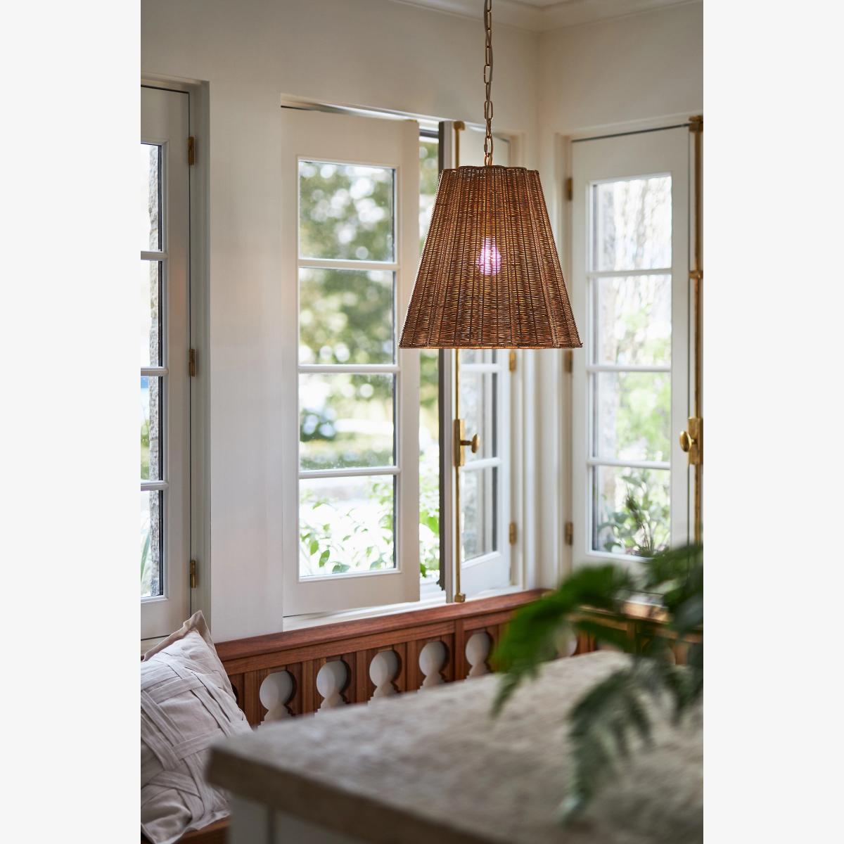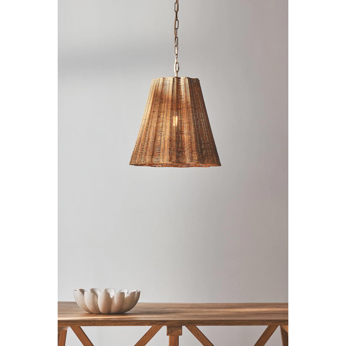*This item is CE listed, meaning it has been tested and approved to meet the government-regulated safety standards for the UK. Use with electrical outlets of 230v or lower, as anything higher can cause fire or injury. If you're purchasing this item for use outside of the United Kingdom, employ the adapter and voltage converter suited for your country. * * Exclusively for Anthropologie * Dry-rated * Rattan, brass-finished iron * Hardwired; professional installation recommended * Can be installed with a dimmer * Can be installed on a sloped ceiling * Includes canopy and chain * 40 watt max * We recommend using type A / E26 bulbs * CE listed * Imported