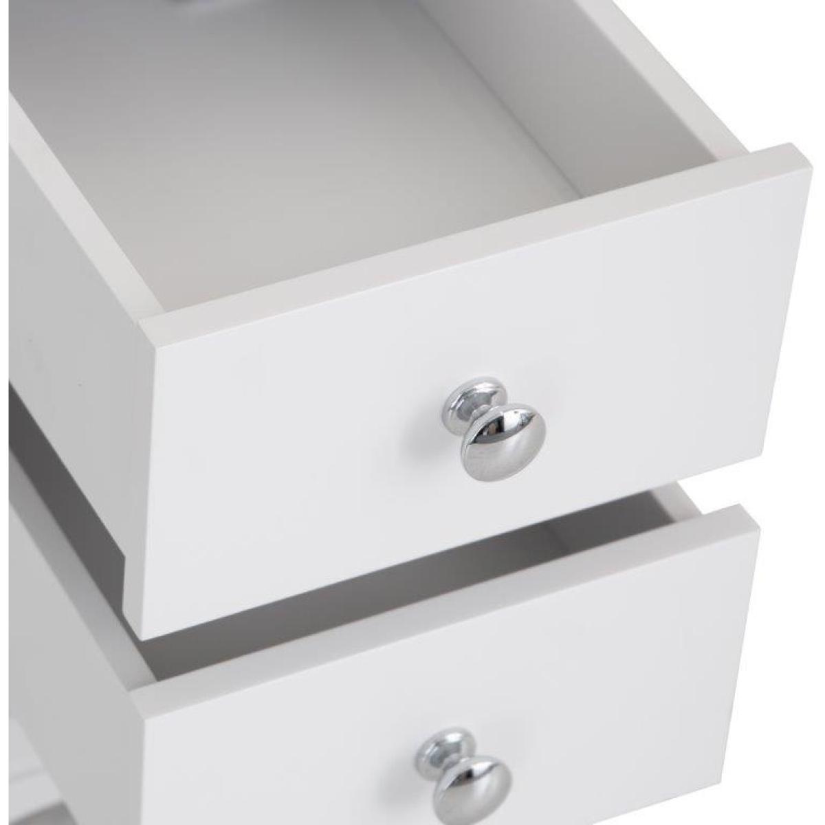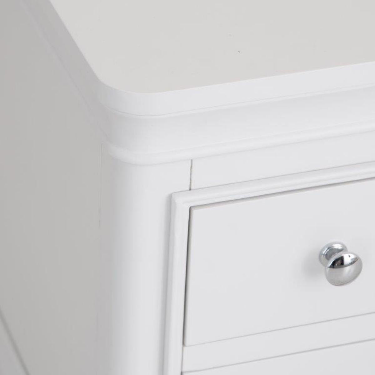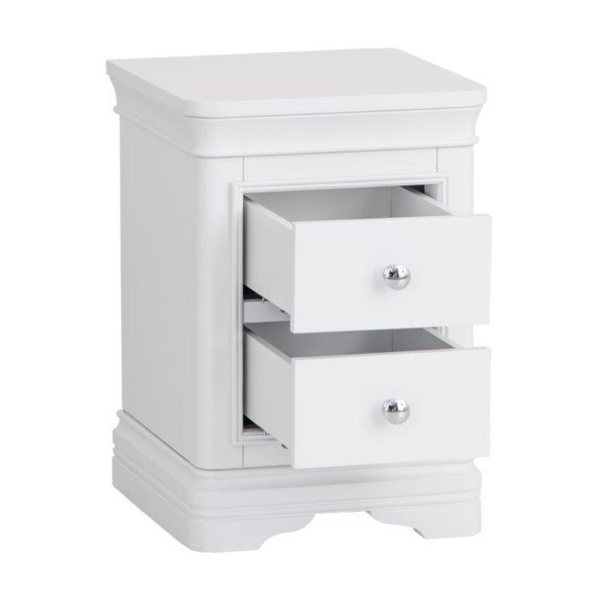 This sophisticated Sutton Small Bedside Cabinet is in a soft white with rounded corners and sculptured feet. Features 2 drawers with soft closing runners. This range is lovingly crafted for a little something special. Key Features: No assembly required. Drawer soft closed runners Hidden under mounted drawer runners 2 Drawers Rounded Edges Colour - White Dimensions: Height: 55cm Width: 38cm Depth: 40cm Weight 16kg All screens vary in colour reproduction and whilst every effort has been made to display the colour as accurately as possible it is for guidance only.