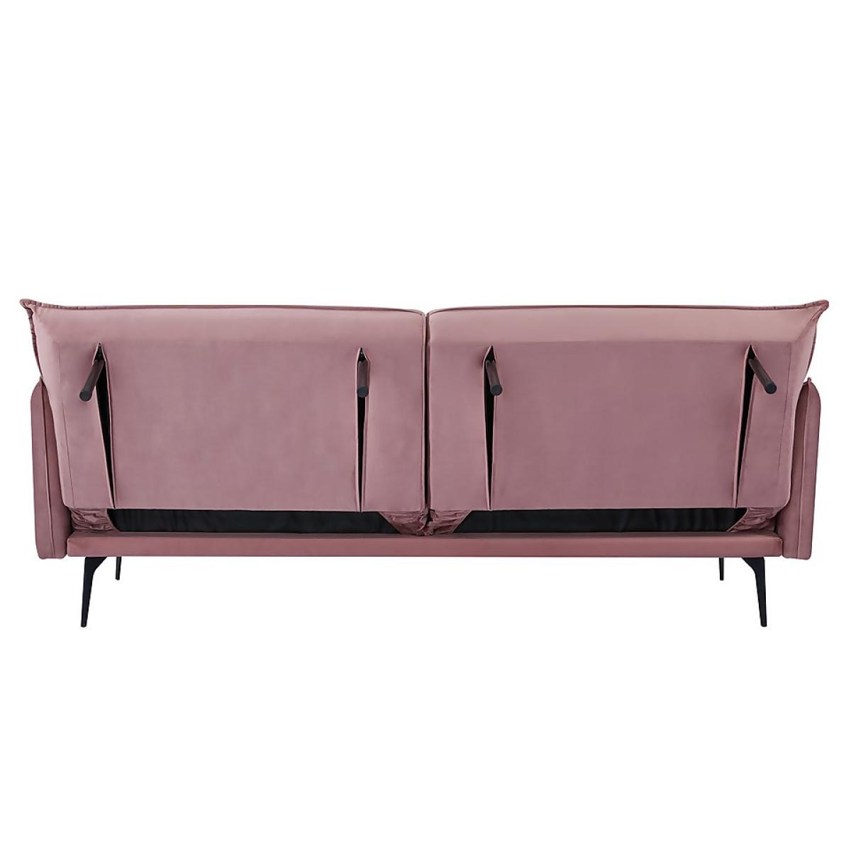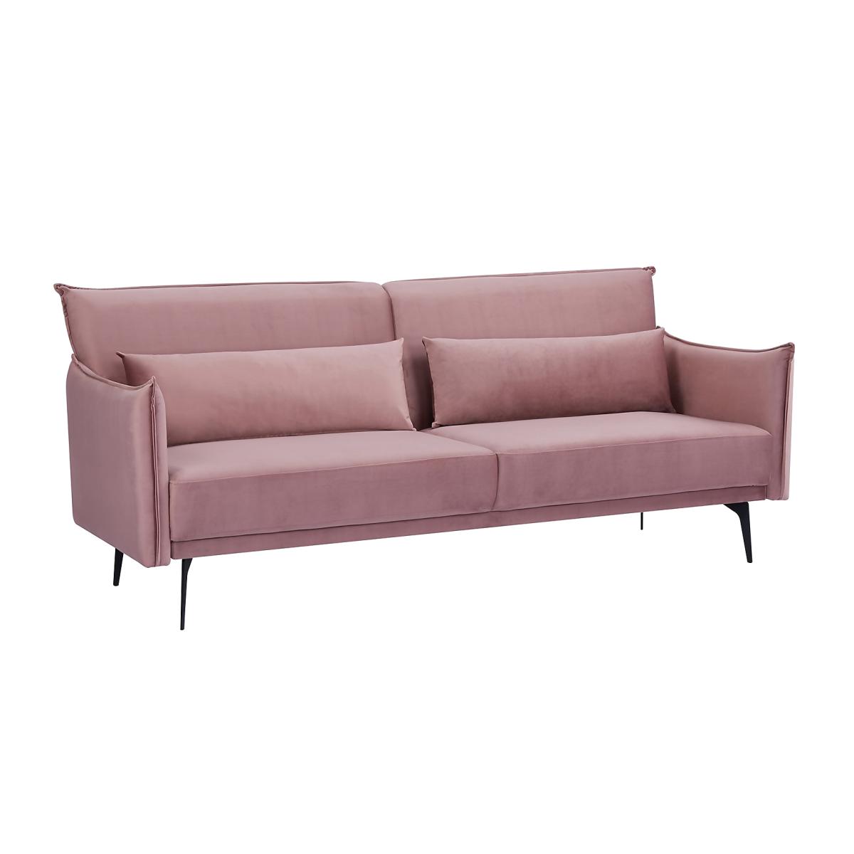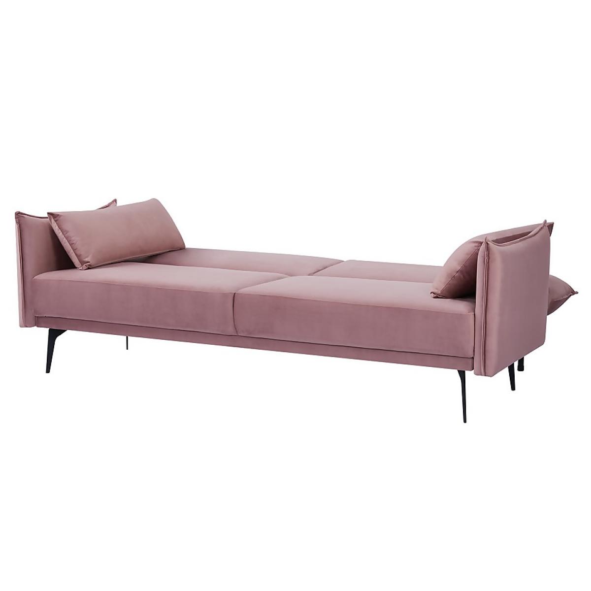 Plump cushions and easy to use clik clak mechanism, the black metal legs contrast the blush velvet upholstery of this sofa bed. Notice the piping around, adding interest to the sofa. This is a seriously comfortable living room addition.