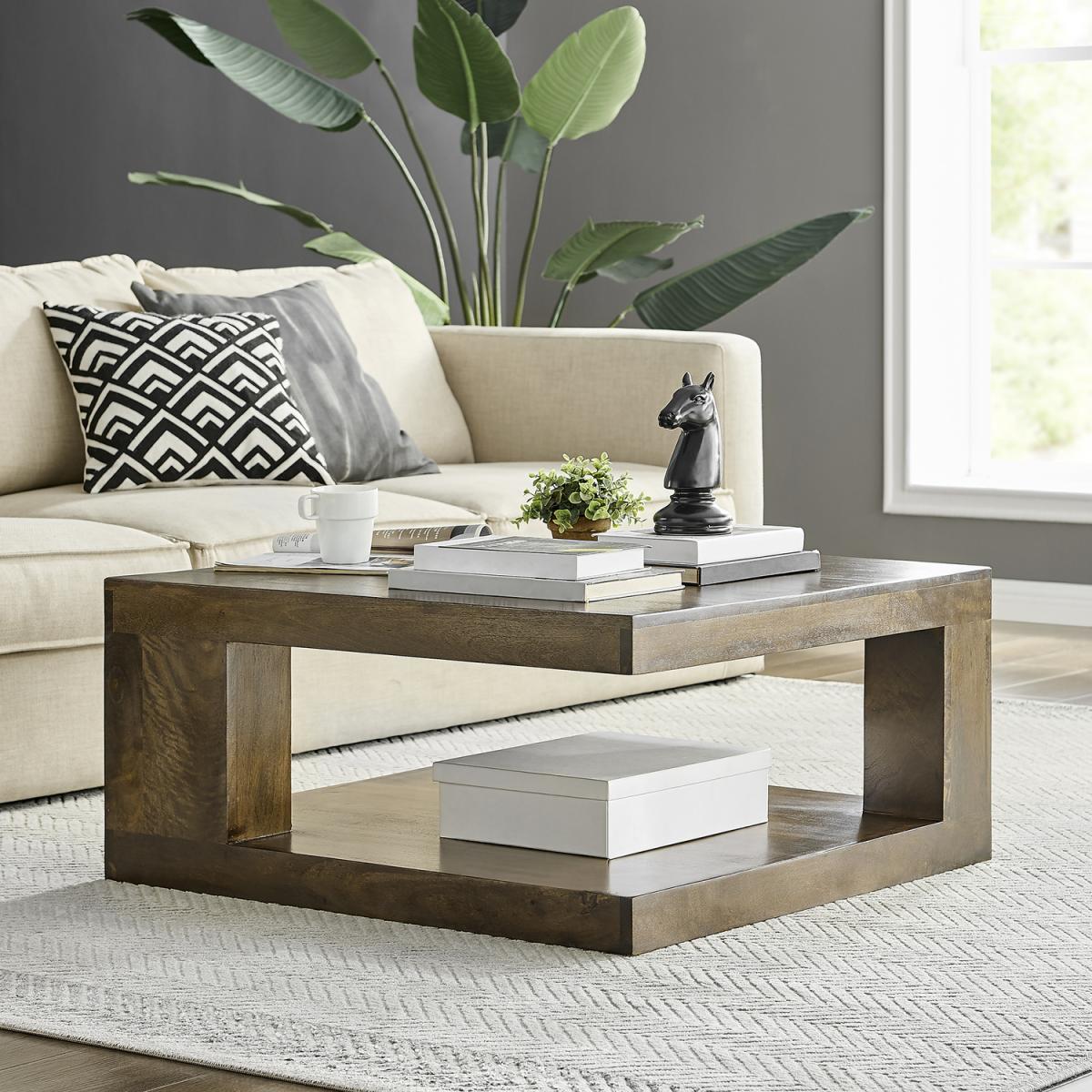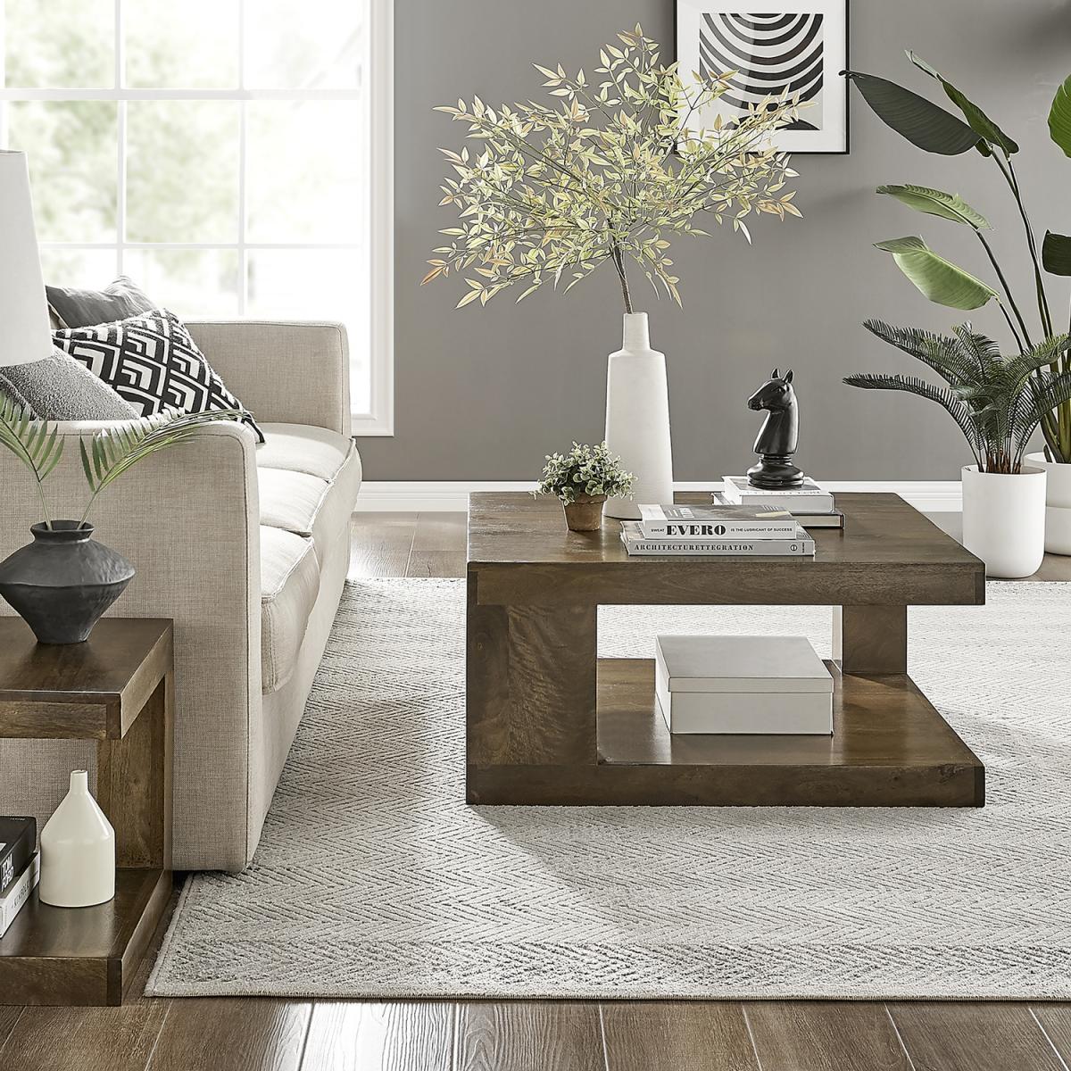 This table’s rich walnut finish makes it a versatile piece that works well in both modern and traditional interiors, adding warmth and texture to the space. Its simple, clean lines allow it to anchor a seating area without overpowering other decor elements. I love pairing it with neutral sofas and textured textiles to create a relaxed yet polished look. Practical styling tips include using the open shelf for books or decorative trays, and keeping the top clutter-free with a statement piece like a sculptural object or a small plant. Its sturdy build and timeless finish make it a functional and stylish addition to any living room.