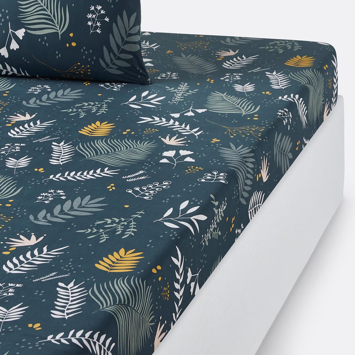 The Suzanne pure cotton percale fitted sheet. A charming print patterned with leaf motifs in different hues. The cotton percale offers a pleasant feeling of freshness and lightness. Its tight weave makes it particularly soft for premium comfort. A matte and smooth material that will soften over time. Product Details • 100% cotton • Cotton percale • 200 thread count: The higher the thread count, the higher the quality of the weave • Leaf print • For mattress height 25cm. Care Advice • Machine washable at 60°C • By washing your laundry at 40°C instead of 60°C, you limit energy consumption. Dimensions • 90 x 190cm: Single • 140 x 190cm: King • 180 x 200cm: King • 260 x 240cm: King • OEKO-TEX® Standard 100. Standard 100 certification by OEKO-TEX® tests textile products for harmful substances via an independent, international label.