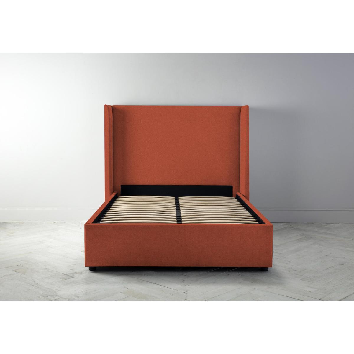 I love this bed as a statement piece, thanks to its vibrant marmalade orange colour and clean-lined design. It works particularly well in contemporary or eclectic interiors where colour can be used to add warmth and energy. For styling, pair it with neutral bedding and layered textures to keep the look balanced, or go bold with complementary colours like teal or navy for a more dramatic effect. Practical tips include keeping surrounding decor minimal to let the bed be the focal point, and adding cosy cushions or throws in contrasting shades to create visual interest. Its versatile shape makes it suitable for both larger bedrooms aiming for a modern vibe, or smaller spaces where a pop of colour can make a big impact.