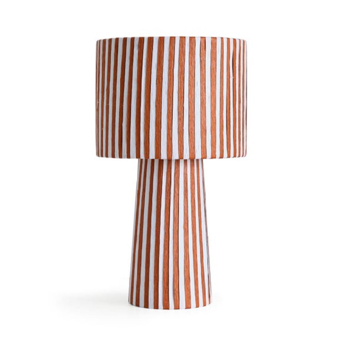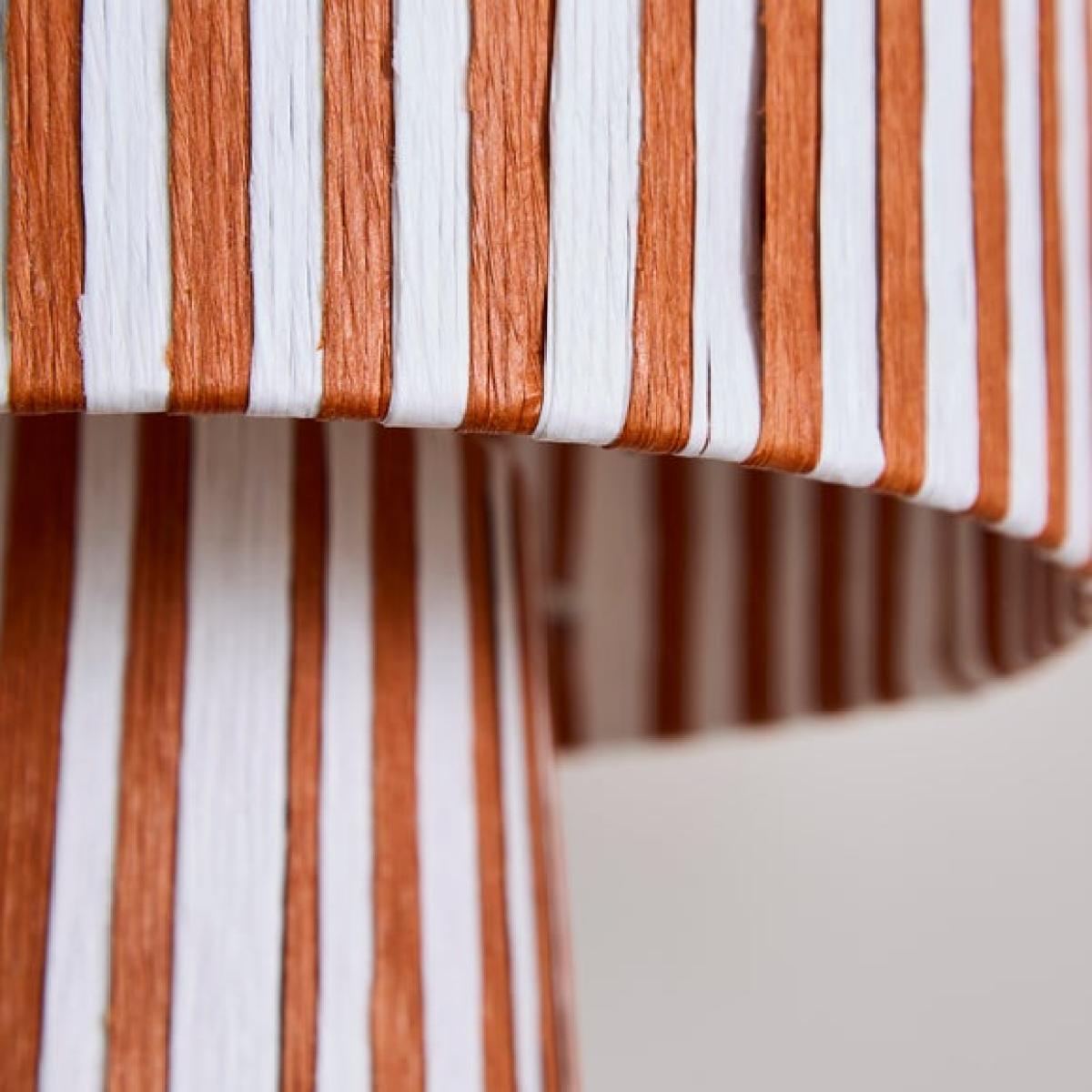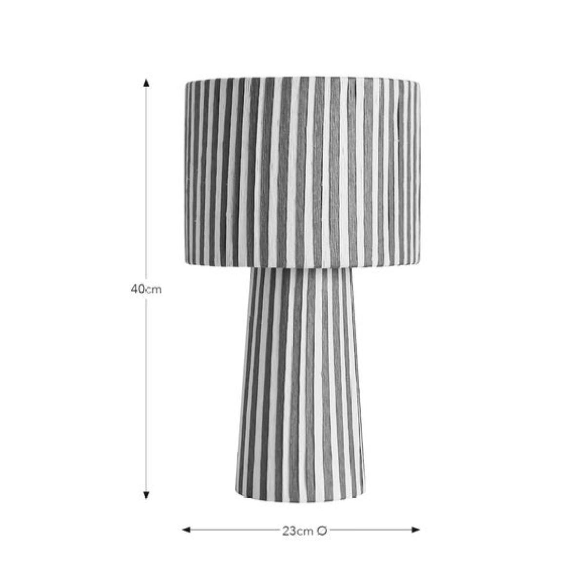 * Bold stiped pattern * Compact and versatile * Woven paper string design The Suzie Striped Woven Table Lamp brings a playful touch to any space. Made from natural paper string, its woven design adds warmth and texture. The bold striped pattern makes it a standout feature in any room. Compact and versatile, it's a simple way to refresh your lighting.