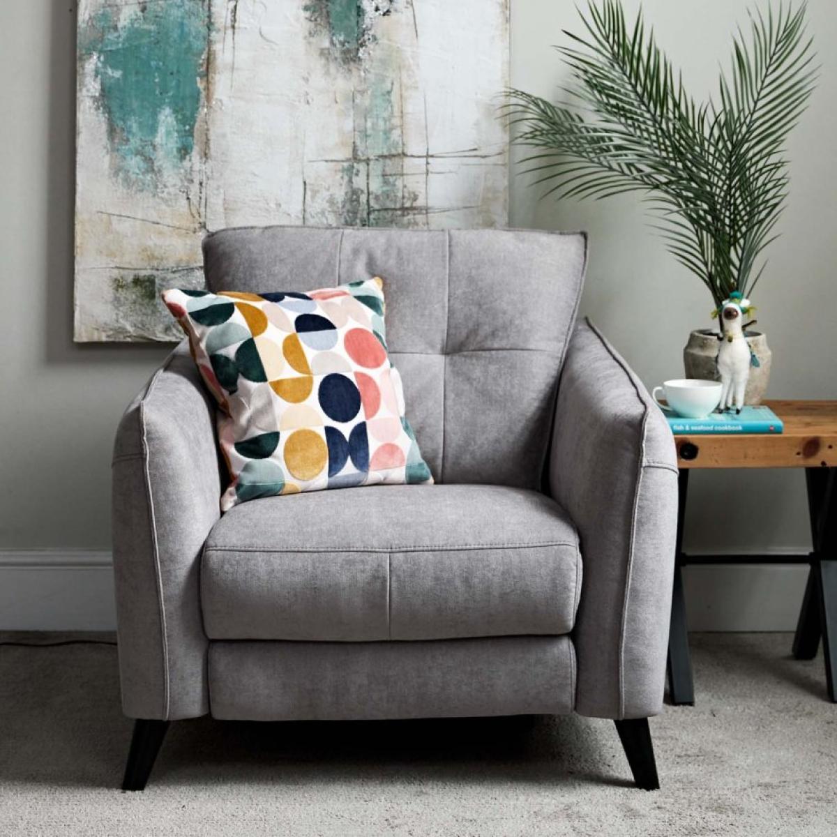 The Suzy Power Armchair is a stunning modern design. The buttons for reclining are hidden between the seat cushion and arm, meaning not only does it just look like an ordinary armchair, but also you don39;t have to adjust your position before pushing the button to recline. This beautiful light grey 39;pewter39; chair is the ultimate relaxation companion, its neutral tone making it the perfect fit for any living room.. *Dimensions cm:W78 x D91 x H87 *Seat: W60 x D54 x H50 *Simple Self Assembly *Hidden Buttons *Structure:Plywood and Solid Wood *Seat: Elastic Webbing and a Little No Sag Spring *Back Rest:Elastic Webbing *Seat Cushion: High Resilient Foam, 24kgM. 3 30kgM. 3 *Back Cushion: Dacron Fibre