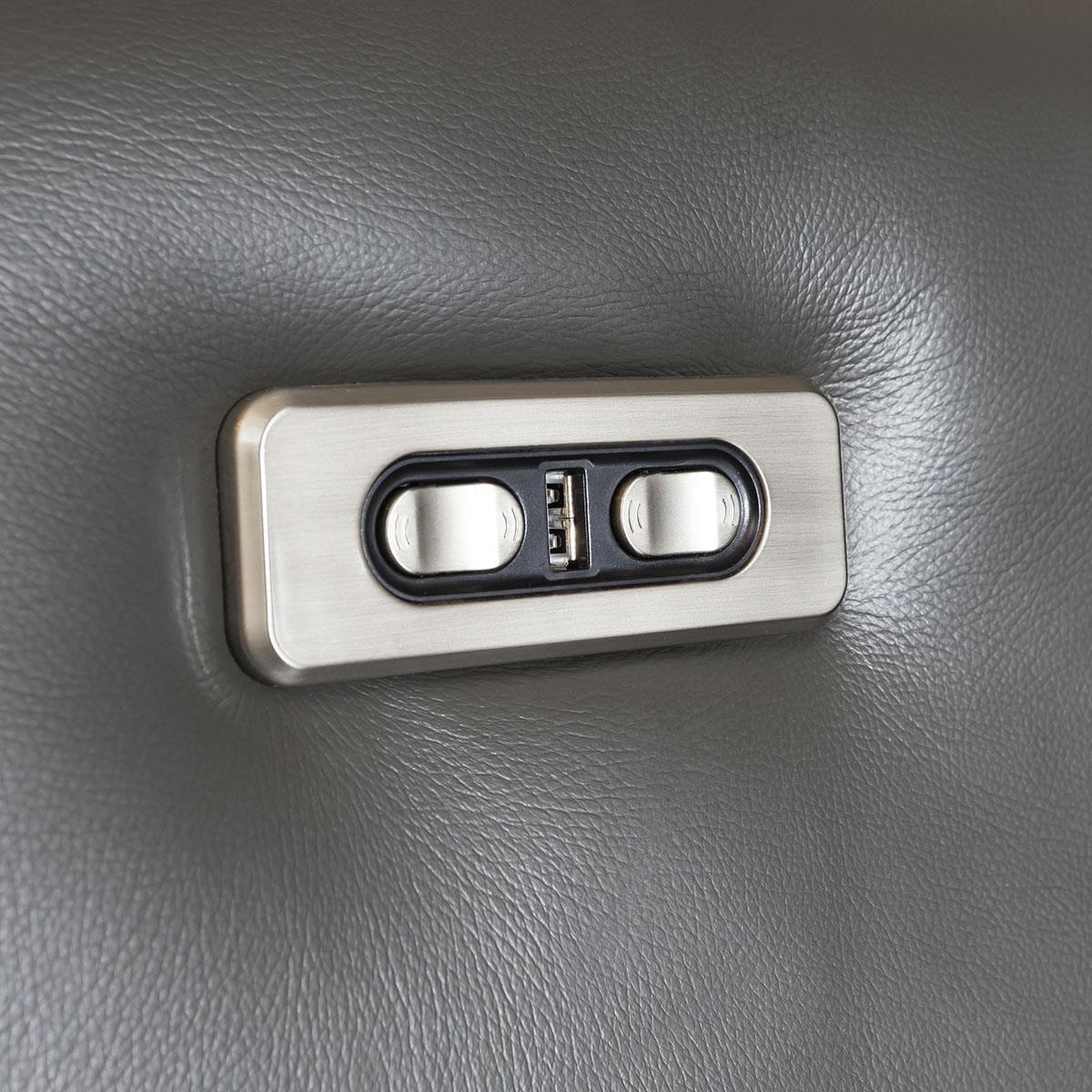 This electric recliner armchair is the epitome of comfort and style. With an electric recliner function, the grey leather wingback arm chair guarantees a relaxation experience. Sink into the plush leather armchair cushions and effortlessly recline to your desired position with the convenience of a side button control. Designed with both functionality and aesthetics in mind, this armchair boasts a sleek black 5-point stair base that adds stability and a touch of sophistication to any living space. The 3m power cable allows for flexible placement options, ensuring you can position the armchair exactly where you desire without constraints. Made with premium genuine leather on the seat and arms in a rich grey shade, this recliner amrchair exudes luxury and style. The back and outer-arms are made from high-quality faux leather, the material is easy to clean, durable, and gives a high-end finish to your living room. The high wing-back design not only adds a touch of elegance but also provides excellent support for your upper body, allowing you to sit comfortably for hours on end. The soft, high-quality foam cushioning envelops you in a cloud of relaxation, making it the perfect spot to unwind after a long day. With its clean lines and meticulous stitching detail, this armchair effortlessly combines modern design with timeless appeal. Whether placed in a contemporary or traditional setting, it complements any decor style. Experience the perfect fusion of style, comfort, and functionality with this premium armchair that promises to be the centerpiece of your living room. Duel Motor Powered Recliner Armchair with Fold-Out Leg Rest Genuine leather on the seats & arms. UKFR faux leather on outer-arms and back 3 Metre Power Cable