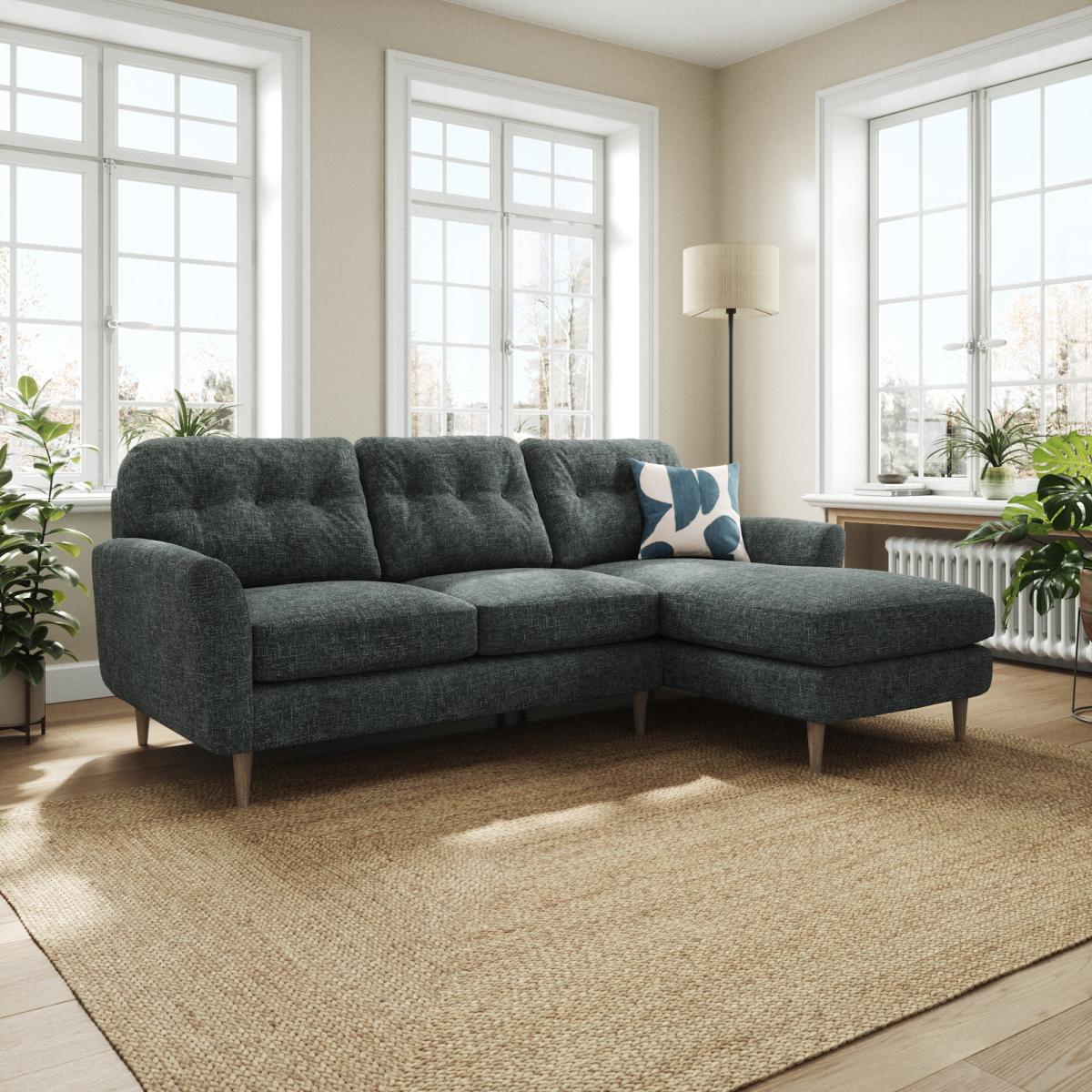 * 100% recycled polyester* Soft chenille* Buttoned back cushions* Wooden legs* Comfortable foam filled seat* Right or Left hand facing options Wrapped in soft, textured chenille, this sofa offers a sumptuous feel and lasting durability. Its expansive corner design invites you to stretch out and unwind, while the spacious chaise extension provides additional comfort and versatility. The chunky chenille fabric adds a touch of laid-back elegance to your space, making it the perfect choice for both casual lounging and stylish gatherings.