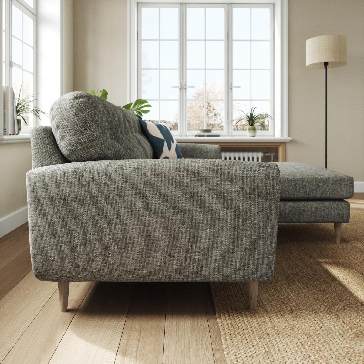 I love this corner sofa for its chunky chenille texture, which adds a cosy yet contemporary feel to any living space. Its reversible design makes it versatile, allowing you to switch the chaise to suit your room layout or personal preference. This sofa works well in both neutral, minimalist interiors and more eclectic schemes when paired with colourful cushions and throws. Styling tips include layering with textured cushions and a blanket for extra comfort, or placing it opposite a statement coffee table to create an inviting conversation area. Its sleek yet plush appearance makes it suitable for casual family spaces or modern open-plan living zones.