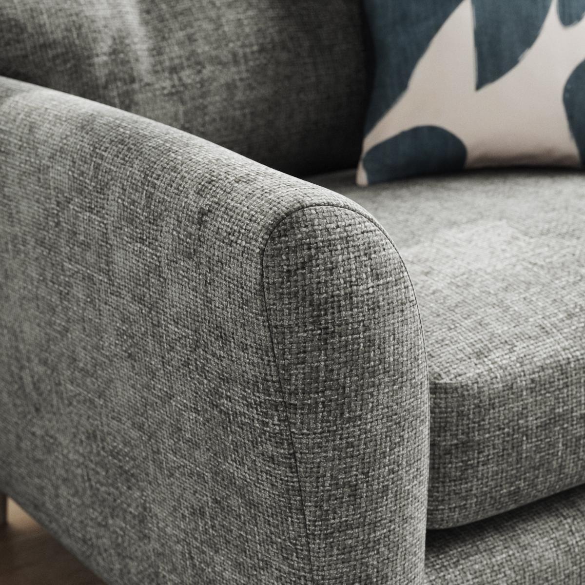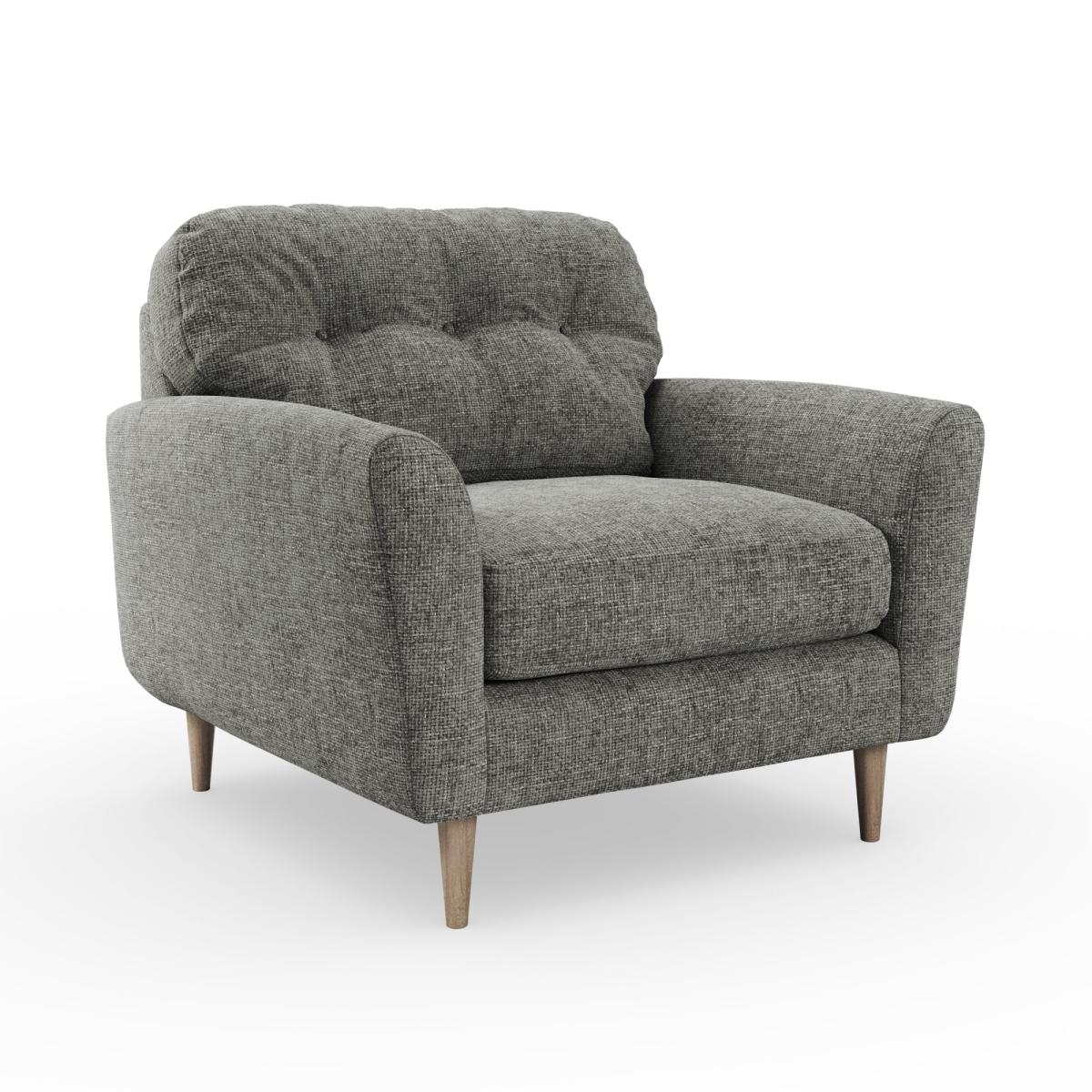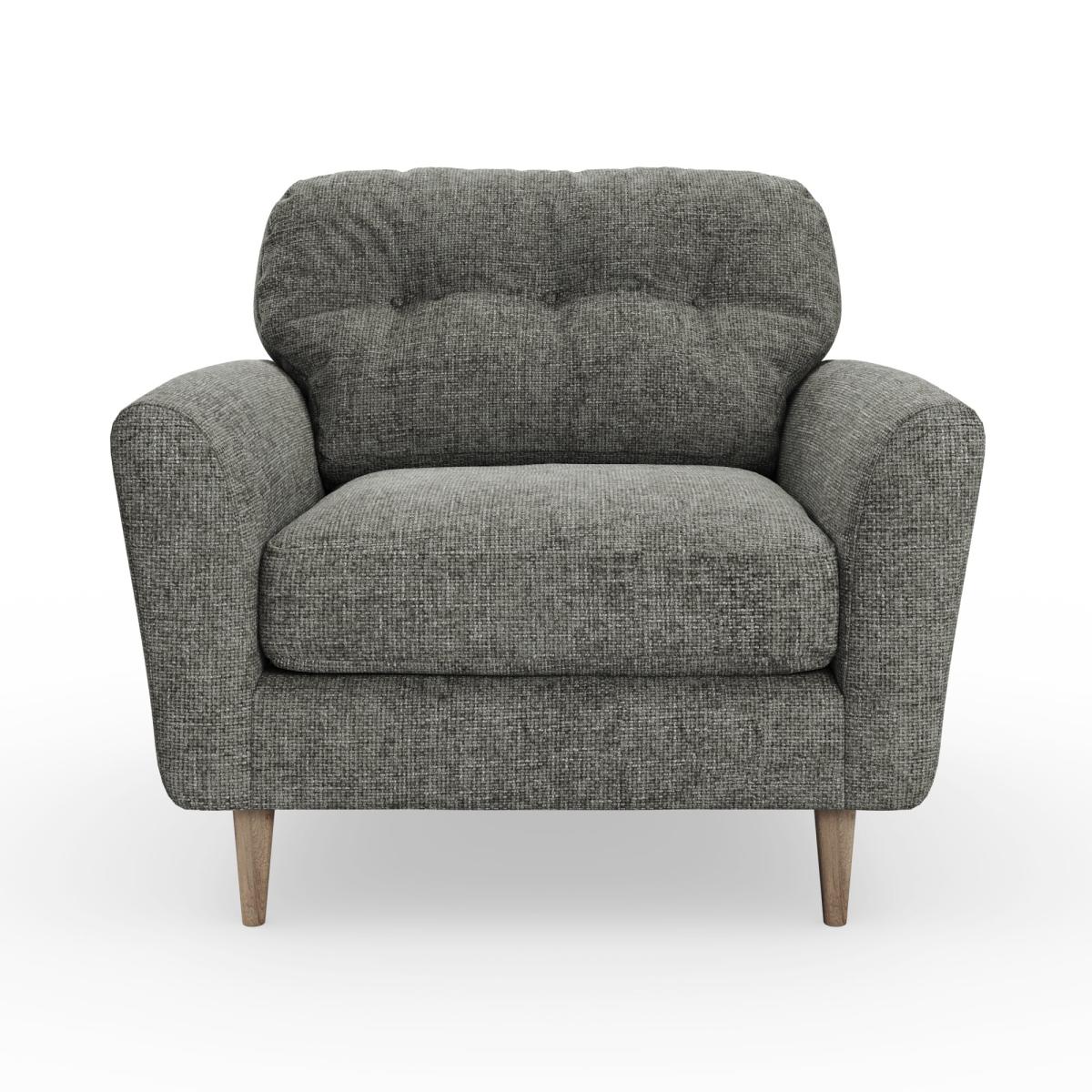 * 100% recycled polyester* Soft touch chenille upholstery* Buttoned back cushions* Comfortable foam and fibre-wrap seat* Compact design A compact snuggle chair with a modern buttoned back and soft touch chenille upholstery, this chair is made from 100% recycled polyester to ensure a low carbon footprint. Comfortable foam and fibre-wrap seat cushions allow you to relax for hours on end.
