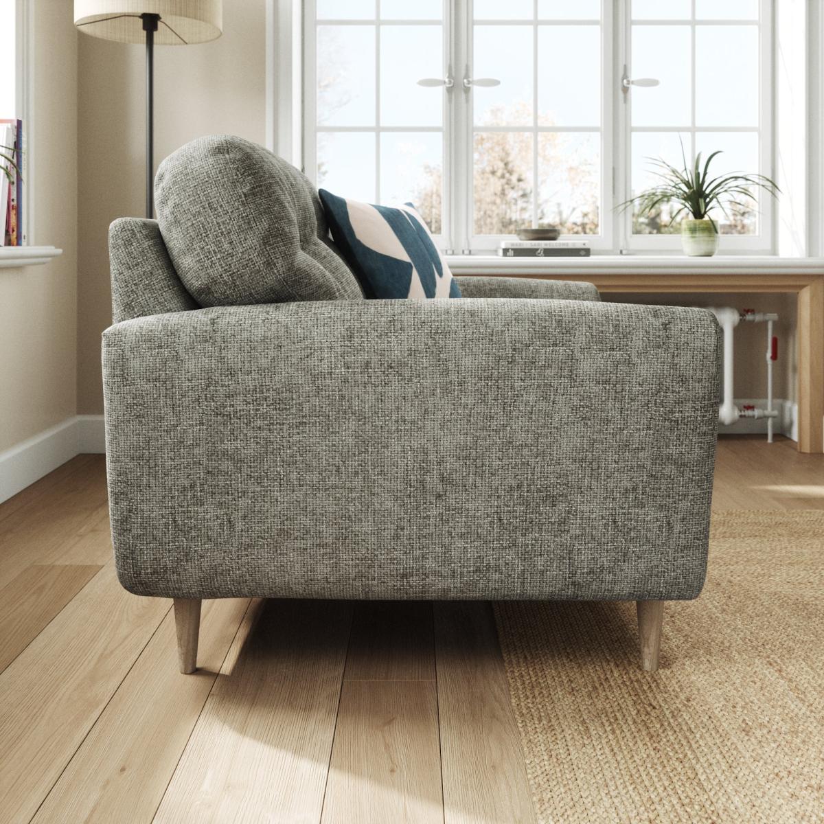 I love this snuggly little sofa for its chunky chenille texture, which adds a cosy and inviting feel to any space. It works particularly well in modern and Scandinavian interiors, thanks to its simple silhouette and neutral charcoal hue that effortlessly complements a range of colour schemes. To style it effectively, consider adding soft throws and cushions in contrasting textures or colours to create visual interest. This piece is versatile enough to function as a main seating option in a compact living room or as a cosy corner seat in a bedroom or reading nook. Its understated design and plush fabric make it a practical choice that can be easily dressed up or down depending on the vibe you're aiming for.