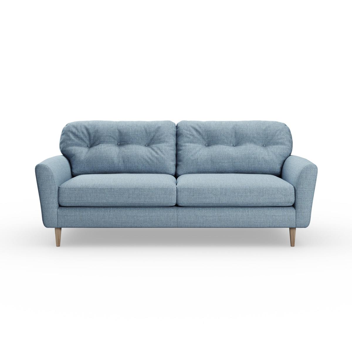 * 100% recycled polyester* Soft woven upholstery* Buttoned back cushions* Comfortable foam and fibre-wrap seat Upholstered in a textured fabric, this sofa's soft texture invites relaxation while adding a touch of elegance to any room. Its generous size provides ample seating for family and guests, making it the perfect centerpiece for social gatherings or quiet evenings at home.