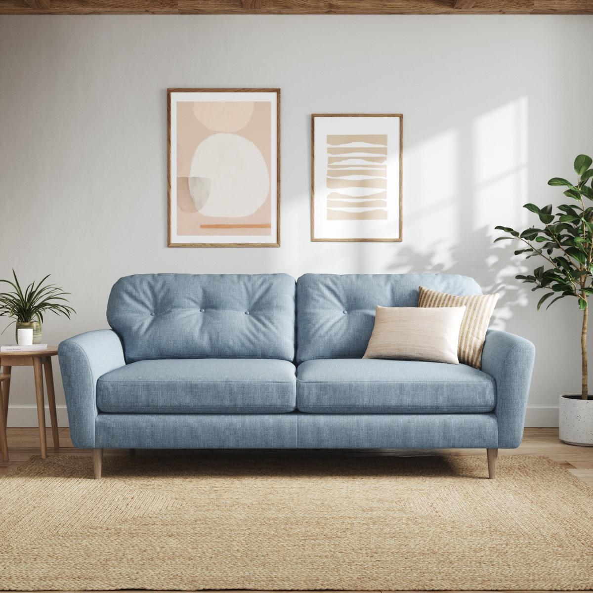 I’m a fan of this chunky navy sofa for its clean lines and durable woven fabric - it feels both relaxed and smart. It’s equally at home in a Scandi-inspired living room or a pared-back coastal scheme, where the deep blue provides a solid base without overwhelming the space. For styling, layer in lighter-coloured cushions (think soft greys or sandy beiges) and a textured throw to add contrast. Pair it with a simple wooden coffee table and a couple of leafy plants to keep the look fresh. If you need extra seating, a low-profile armchair in a neutral tone will balance the sofa nicely.