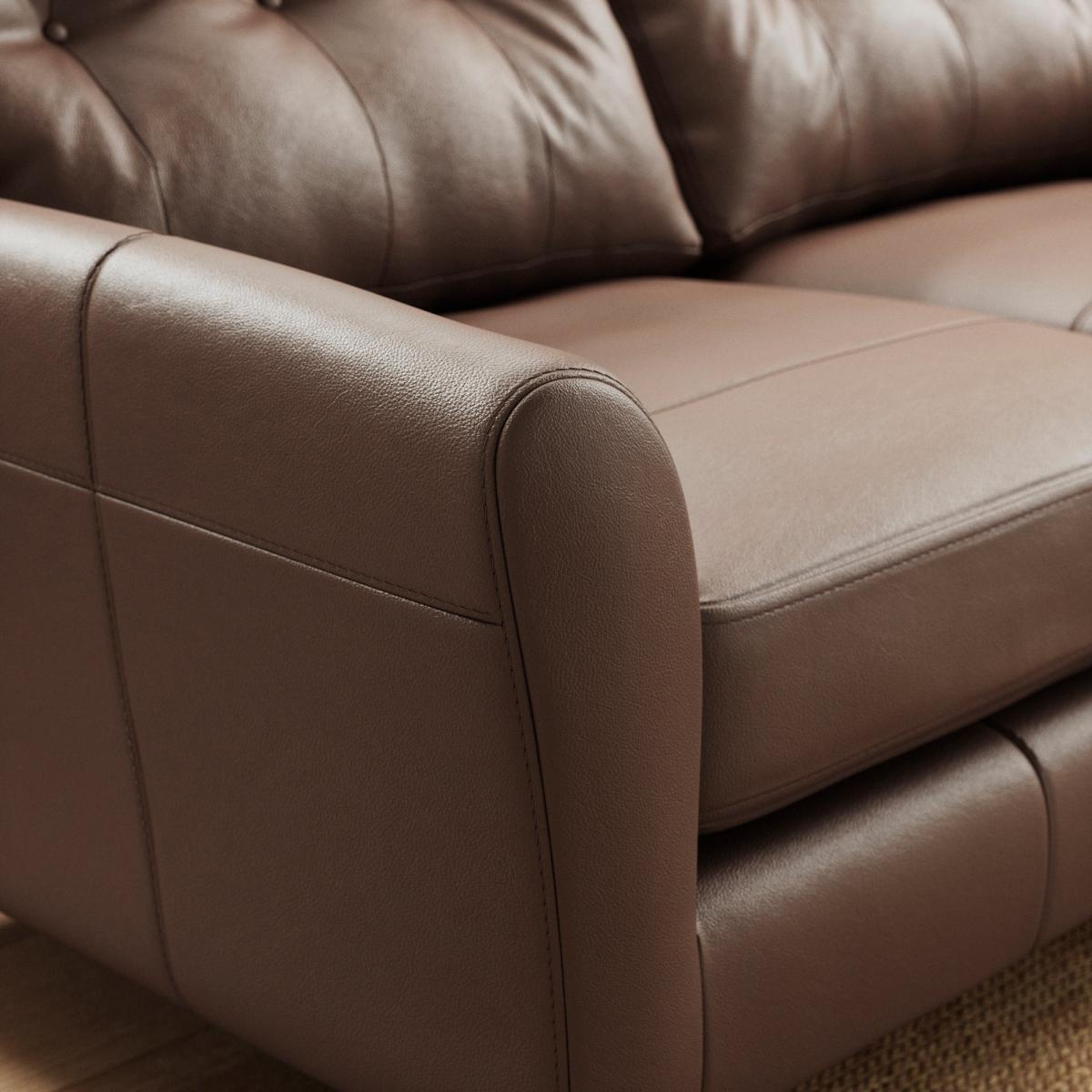 * 100% leather * Smooth upholstery finish * Buttoned back cushions * Comfortable foam and fibre-wrap seat Ideal for smaller rooms or as a complement to larger seating arrangements, this sofa features plush cushioning and supportive armrests that invite relaxation. The expertly crafted leather upholstery enhances its timeless appeal, while the sturdy construction ensures durability.