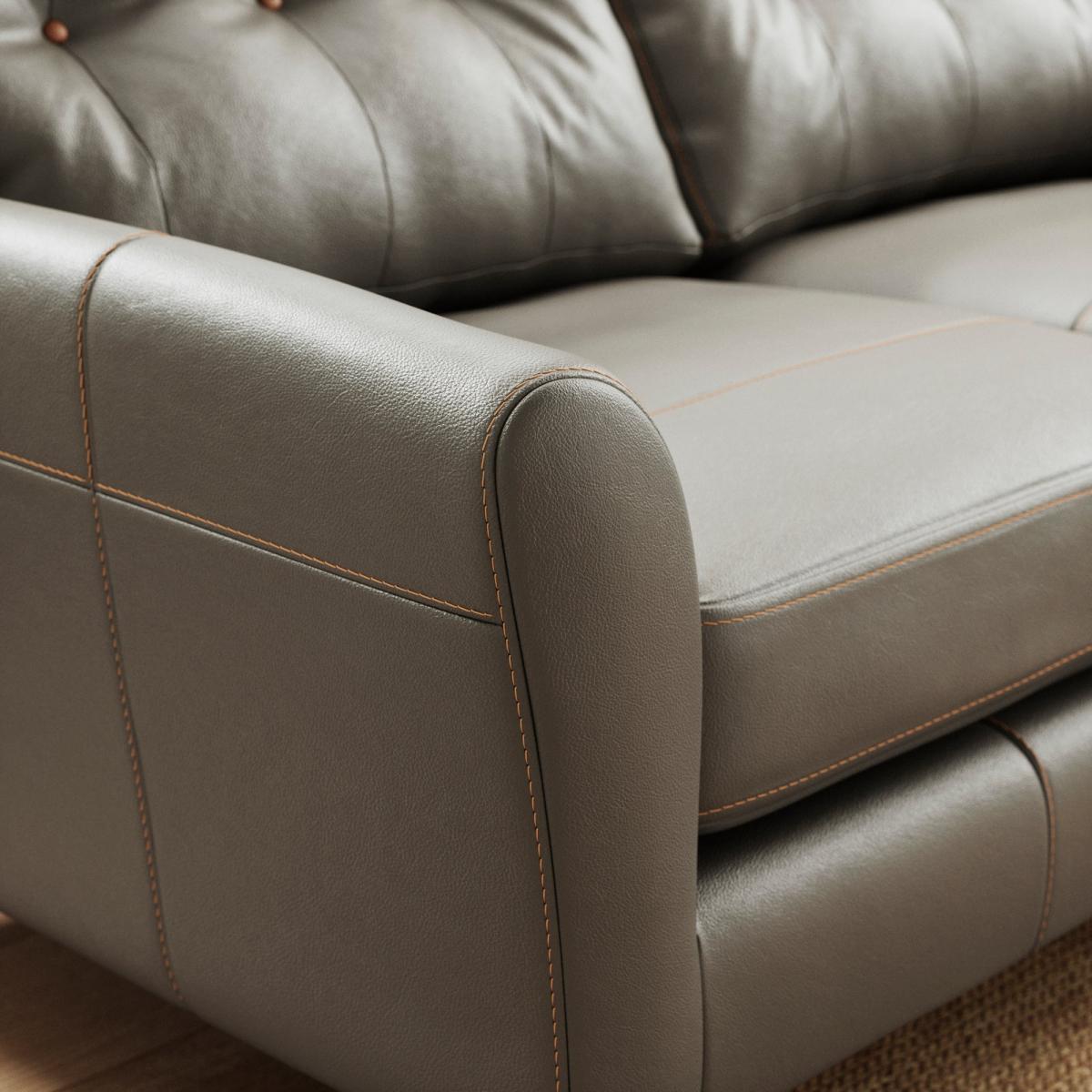 * 100% leather * Smooth upholstery finish * Buttoned back cushions * Comfortable foam and fibre-wrap seat Ideal for smaller rooms or as a complement to larger seating arrangements, this sofa features plush cushioning and supportive armrests that invite relaxation. The expertly crafted leather upholstery enhances its timeless appeal, while the sturdy construction ensures durability.