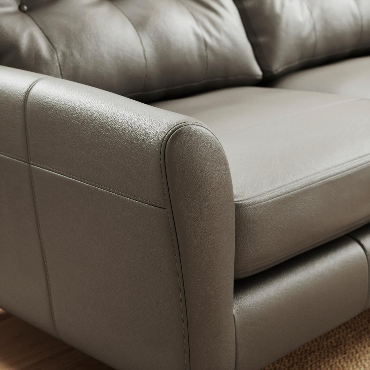 * 100% leather * Smooth upholstery finish * Buttoned back cushions * Comfortable foam and fibre-wrap seat This sofa's generously padded cushions and supportive structure provide unparalleled comfort, making it ideal for daily relaxation or entertaining guests. The high-quality leather upholstery adds a layer of sophistication, accentuating the sofa’s clean lines and tailored design.