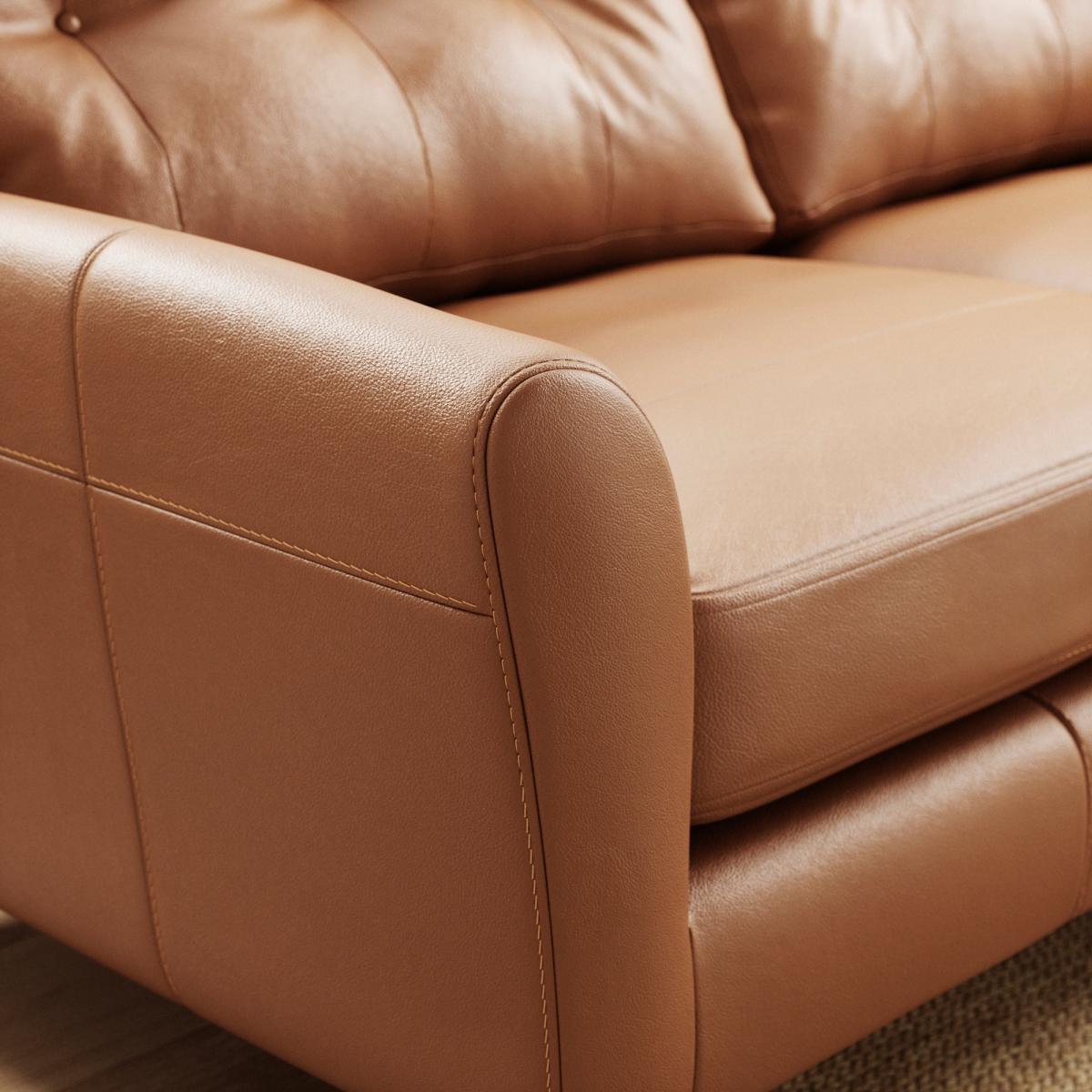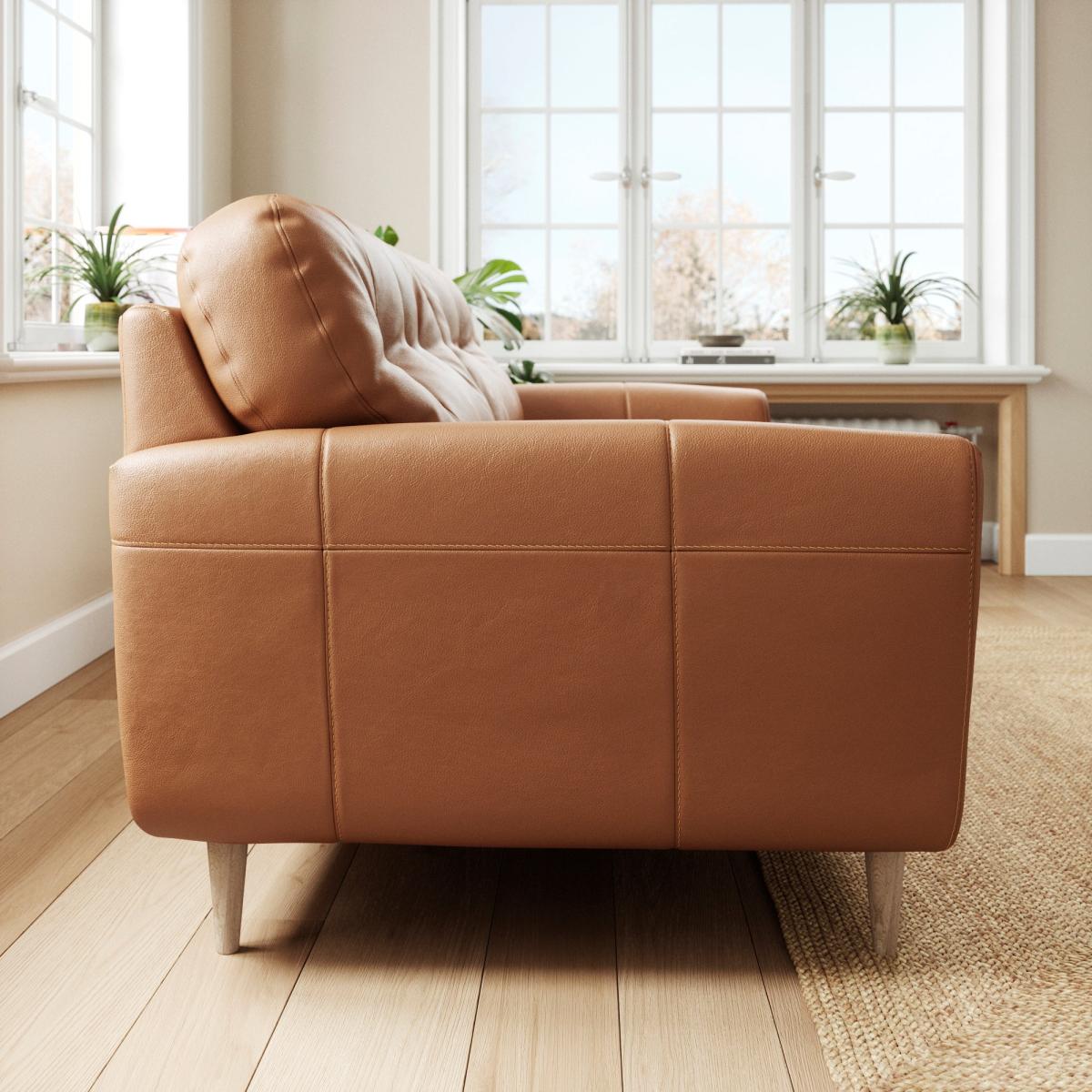 * 100% leather * Smooth upholstery finish * Buttoned back cushions * Comfortable foam and fibre-wrap seat This sofa's generously padded cushions and supportive structure provide unparalleled comfort, making it ideal for daily relaxation or entertaining guests. The high-quality leather upholstery adds a layer of sophistication, accentuating the sofa’s clean lines and tailored design.