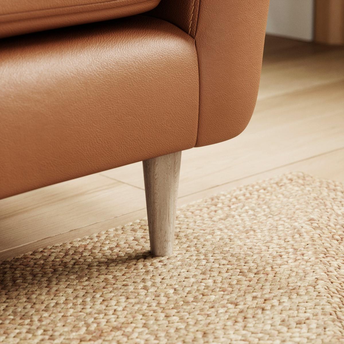 I really like this leather three-seater for its timeless appeal and versatility. It works well in both contemporary and traditional interiors, especially when paired with neutral tones to highlight its classic silhouette. The leather's rich texture adds sophistication, but it also ages gracefully, developing a lovely patina over time. Practical styling tips include adding cosy cushions or a soft throw to soften the look and make it more inviting, while low-maintenance for everyday use. Its understated elegance makes it a great anchor piece, whether you’ve got a minimalist, scandi, or eclectic space.