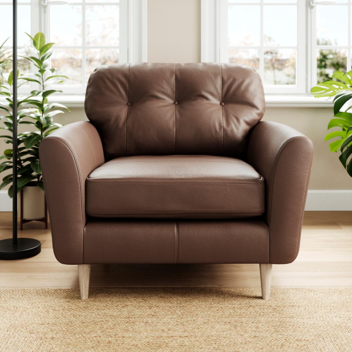 * 100% leather * Smooth upholstery finish * Buttoned back cushions * Comfortable foam and fibre-wrap seat * Compact design The Sven Classic Leather Snuggle Chair is designed to provide a haven of comfort with a timeless aesthetic. Its spacious seat and plush cushioning invite you to relax and unwind, offering exceptional support and softness. The premium leather upholstery is expertly finished, delivering a sleek, polished look that enhances any interior.