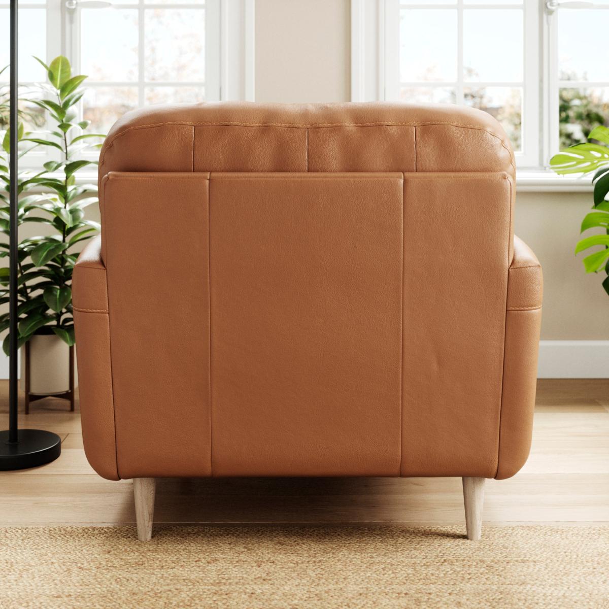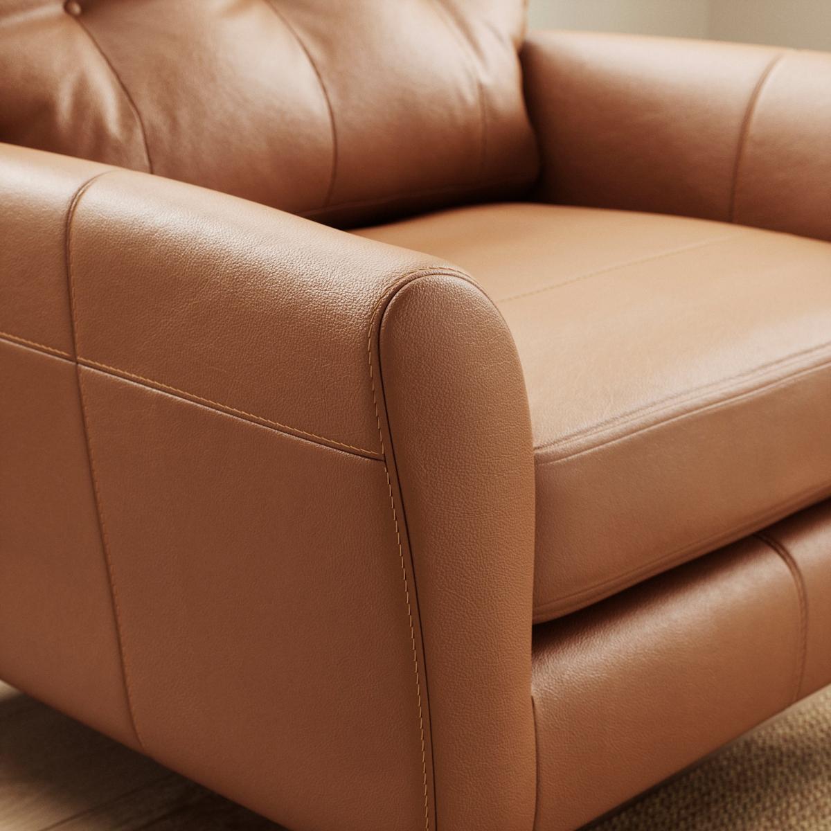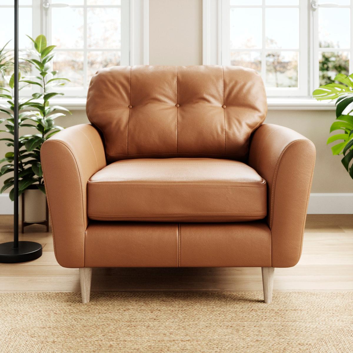 * 100% leather * Smooth upholstery finish * Buttoned back cushions * Comfortable foam and fibre-wrap seat * Compact design The Sven Classic Leather Snuggle Chair is designed to provide a haven of comfort with a timeless aesthetic. Its spacious seat and plush cushioning invite you to relax and unwind, offering exceptional support and softness. The premium leather upholstery is expertly finished, delivering a sleek, polished look that enhances any interior.