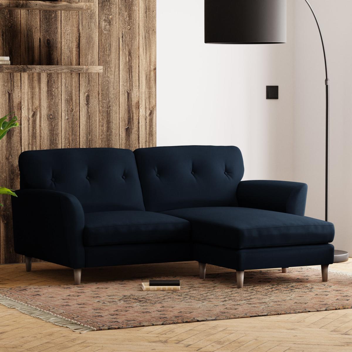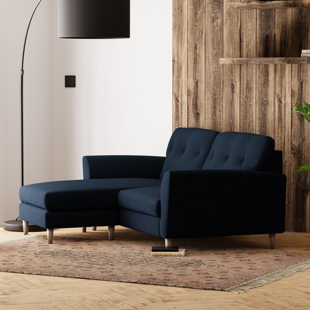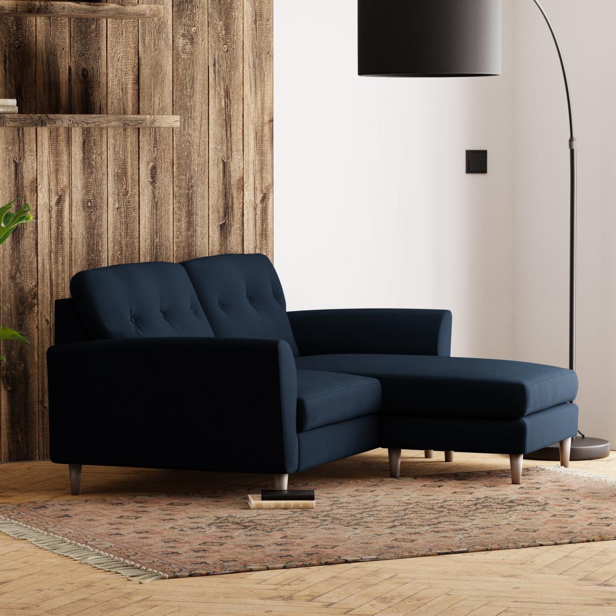 Consider this sofa your new best friend. Soft touch velvet upholstery and a compact design make this a sofa that you're sure to never want to leave. Eye-catching and comfortable, the Sven has a buttoned back cushion design so you can rest your head in true Scandinavian style. It's perfect for any space, from a small studio apartment to a cozy reading nook. Not only that, but the chaise cushion can be easily reconfigured to suit your space.