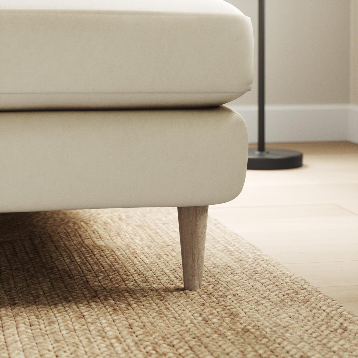 I love this corner sofa for its elegant Champagne velvet upholstery, which adds a luxurious yet versatile touch to any living space. It works particularly well in contemporary or glam interiors, but can also be styled with more neutral or minimalist schemes for a sophisticated feel. Practical tips include pairing it with throw cushions in contrasting textures or colours to add depth, and complementing it with a sleek coffee table and soft lighting for cosy evenings. Its sizeable, L-shaped design makes it ideal for socialising or family living, while maintaining a streamlined silhouette that enhances rather than overwhelms a room.