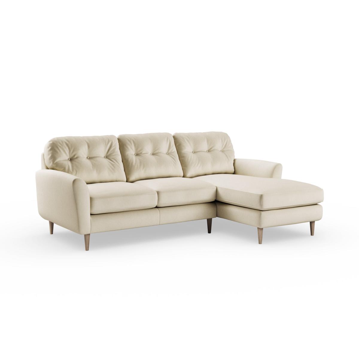 * 100% recycled polyester* Soft velvet fabric* Buttoned back cushions* Wooden legs* Comfortable foam filled seat* Right or Left hand facing options This stunning piece combines grandeur with comfort, featuring plush velvet upholstery in a rich, luxurious hue. Its generous proportions and corner design create the perfect spot for lounging, entertaining, or simply relaxing in style. The chaise extension adds extra legroom for those laid-back afternoons, while the sleek lines and sumptuous fabric bring an air of sophistication to your home.