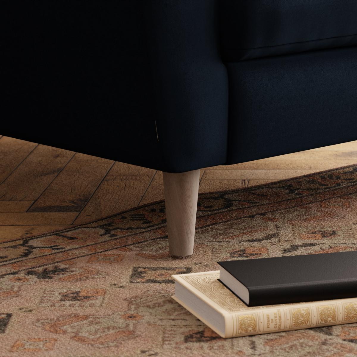 I love the navy blue velvet snuggle chair for its versatility and timeless appeal. It works particularly well in contemporary or mid-century styled interiors, adding a touch of luxe without feeling overly formal. The deep colour and plush fabric make it ideal for creating a cosy corner or pairing with neutral tones for a chic contrast. Practical styling tips include complementing it with soft cushions in metallics or textured fabrics, and adding warm wooden or brass accents nearby to enhance its rich hue. As a compact piece, it offers comfort and style without overwhelming a space, making it perfect for smaller living rooms, bedrooms, or reading nooks.