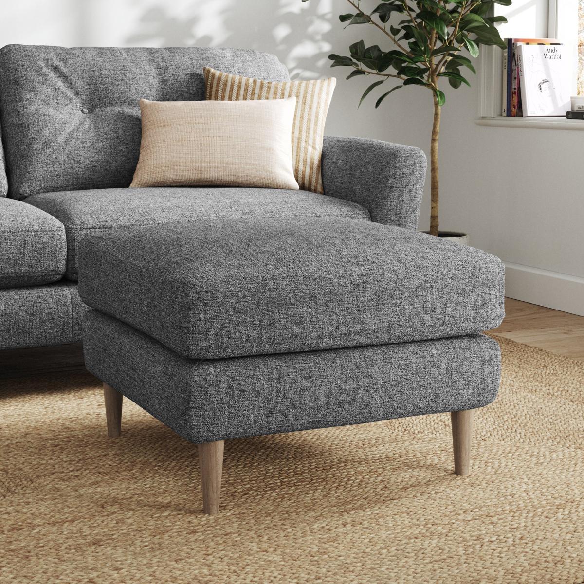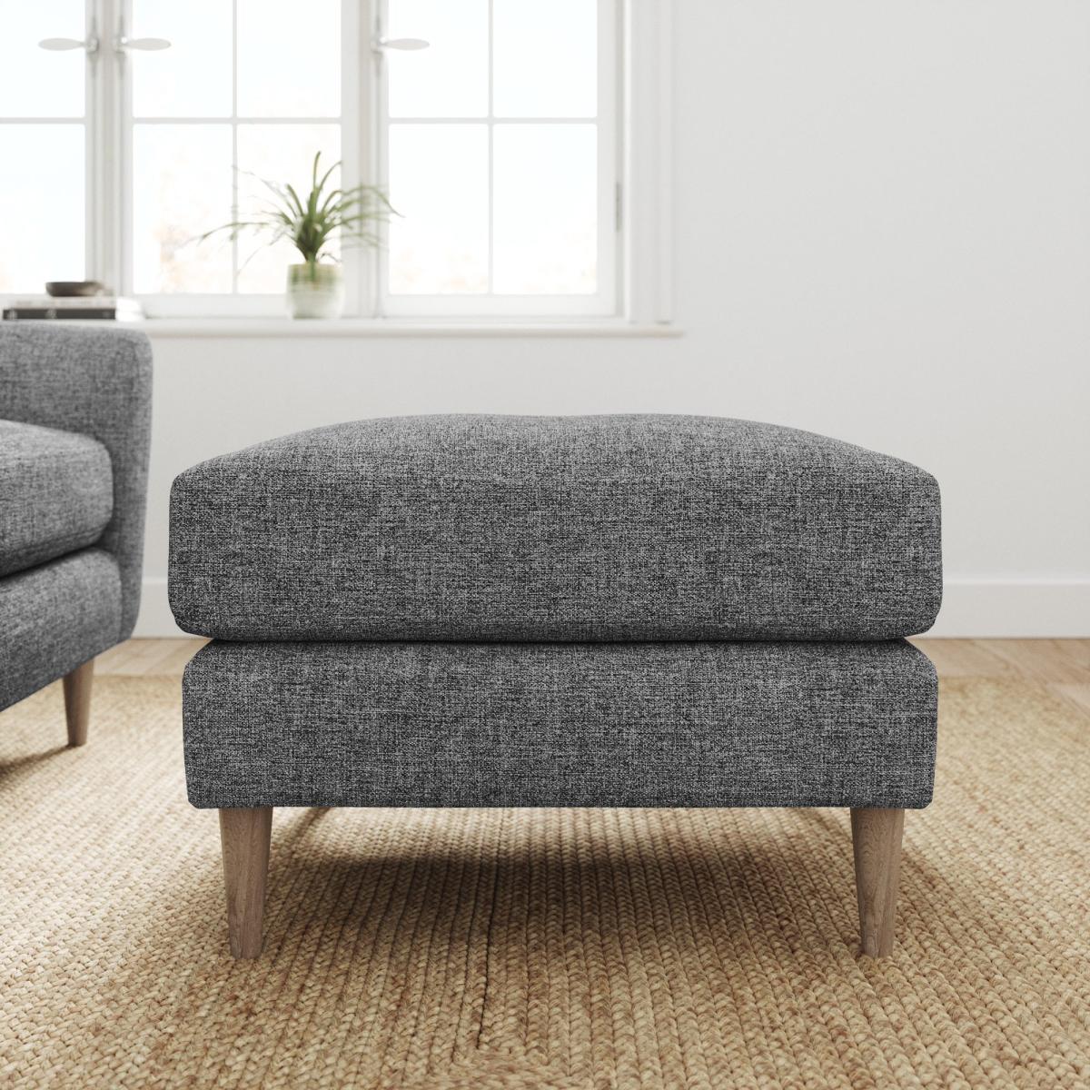 * 100% recycled polyester* Soft woven fabric* Wooden legs* Comfortable foam filled seat Designed with a plush top and a textured weave fabric, this footstool offers a comfortable place to rest your feet or use as extra seating. The wooden feet add a touch of natural warmth and durability, perfectly complementing the footstool's contemporary design. Its compact size makes it easy to move around, making it a practical yet elegant piece for any room.