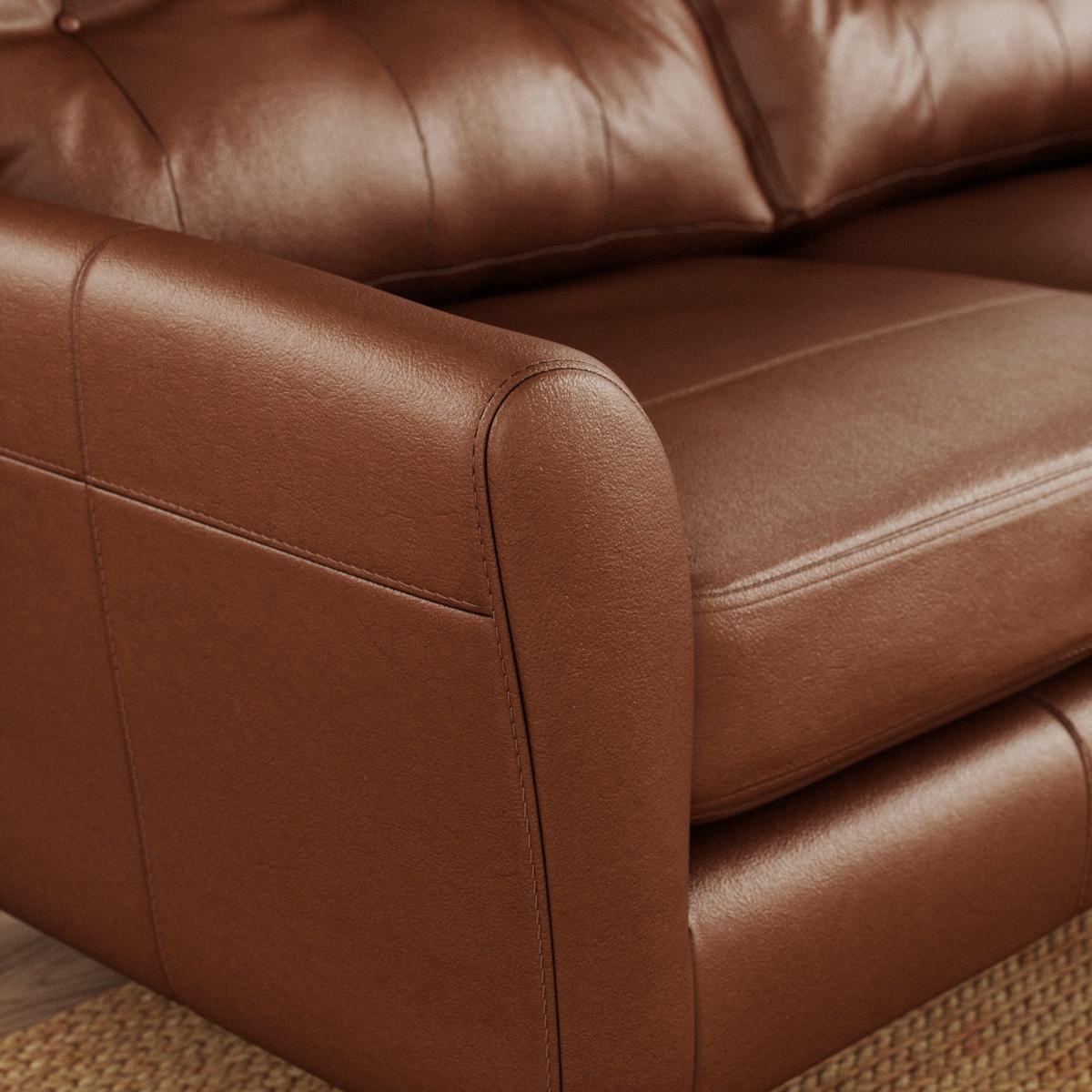 * 100% leather * Textured upholstery finish * Buttoned back cushions * Comfortable foam and fibre-wrap seat This sofa's plush, deep cushions and supportive backrest offer exceptional relaxation, while the vintage leather upholstery adds character and depth. Thoughtfully constructed for durability, this sofa promises years of enjoyment. The elegant profile and tailored finish enhance its sophisticated look, making it suitable for both contemporary and traditional interiors.