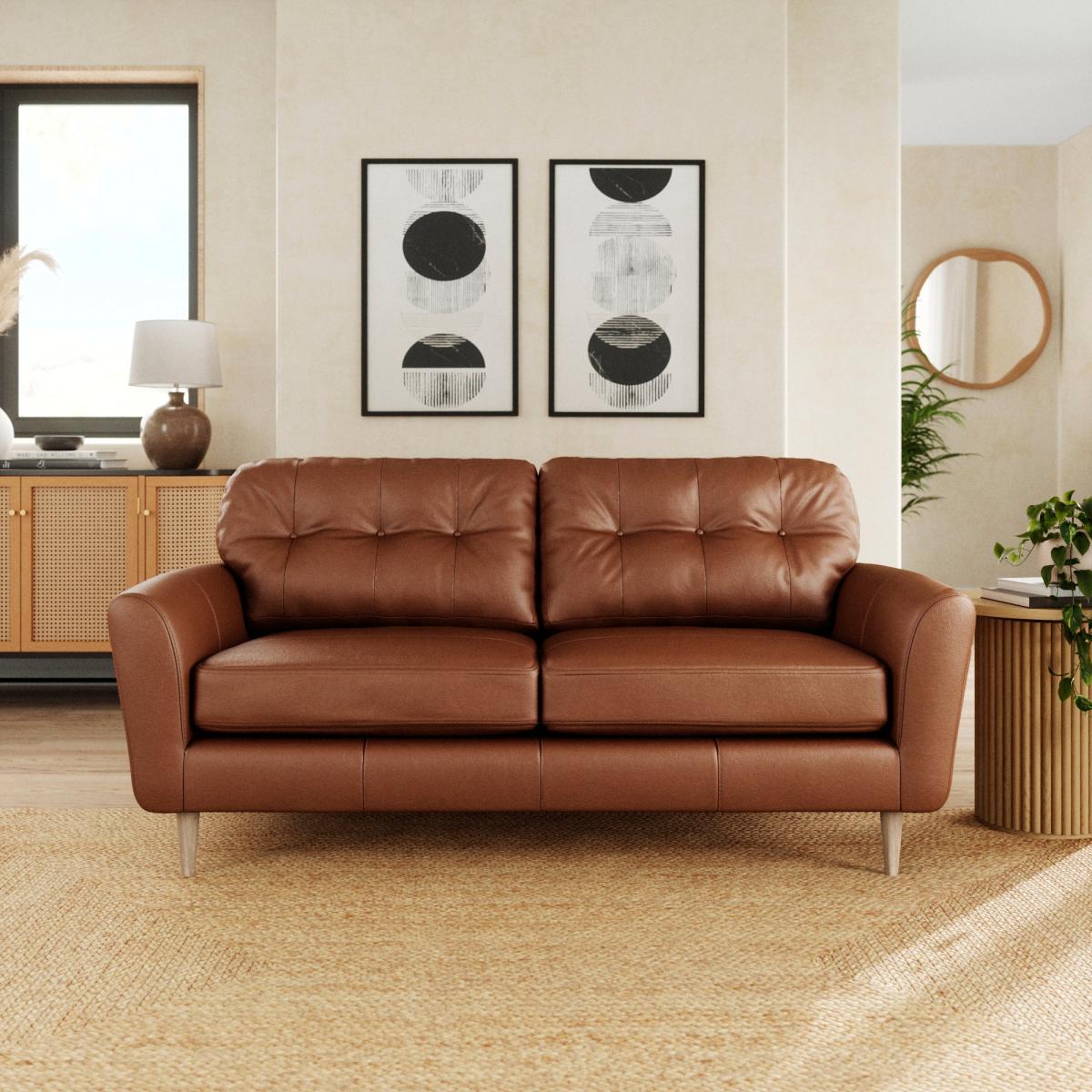 I love this vintage leather three-seater for its timeless appeal and versatility. It works particularly well in both contemporary and mid-century inspired interiors, adding warmth and character to the space. Pair it with neutral-toned cushions or textured throws for a cosy, layered look. Practical styling tips include complementing it with a modern area rug to ground the space and adding some statement lighting, such as a sleek floor lamp. Its classic shape makes it an effortless anchor for various colour schemes, from earthy tones to monochrome schemes, making it a flexible piece for everyday living with a touch of vintage charm.