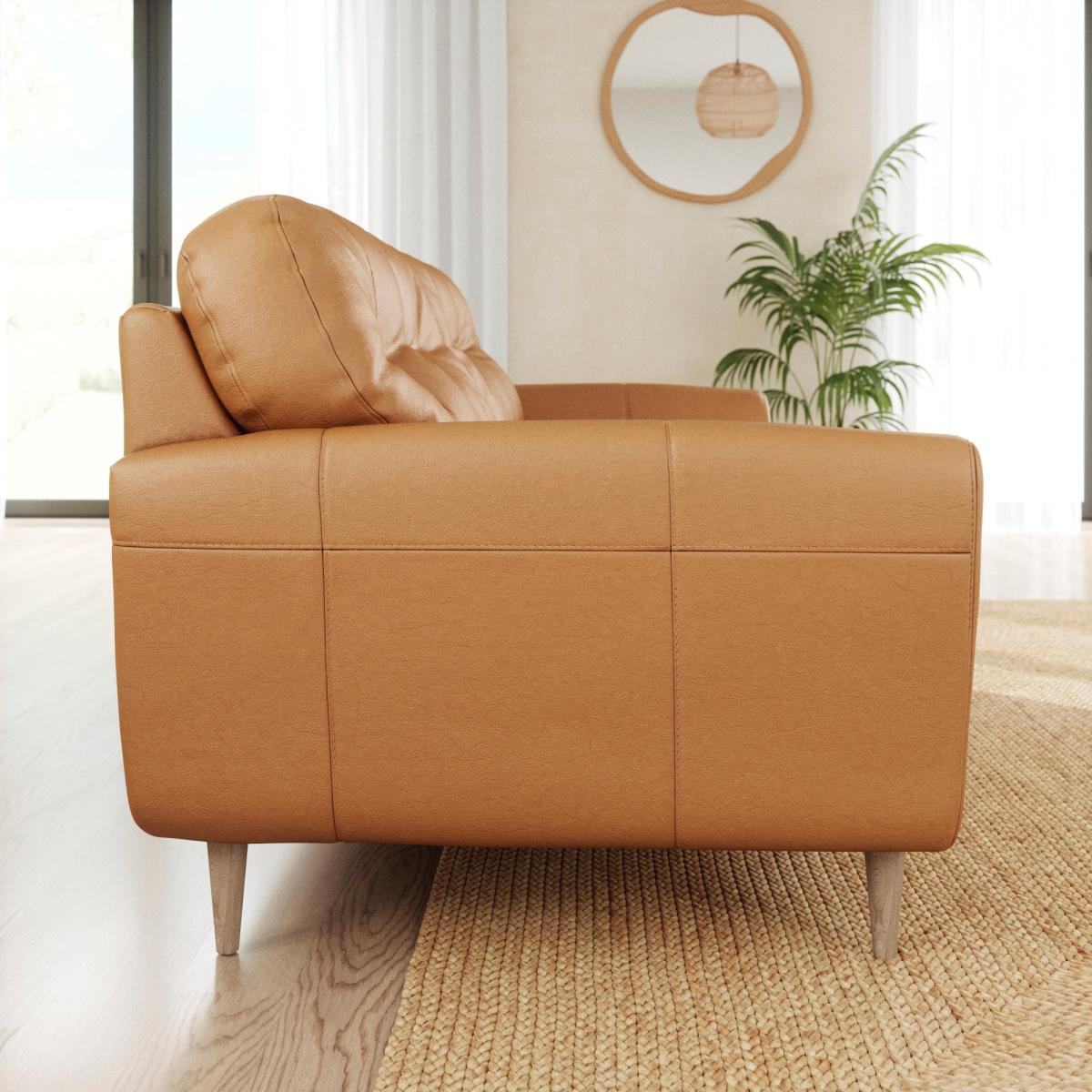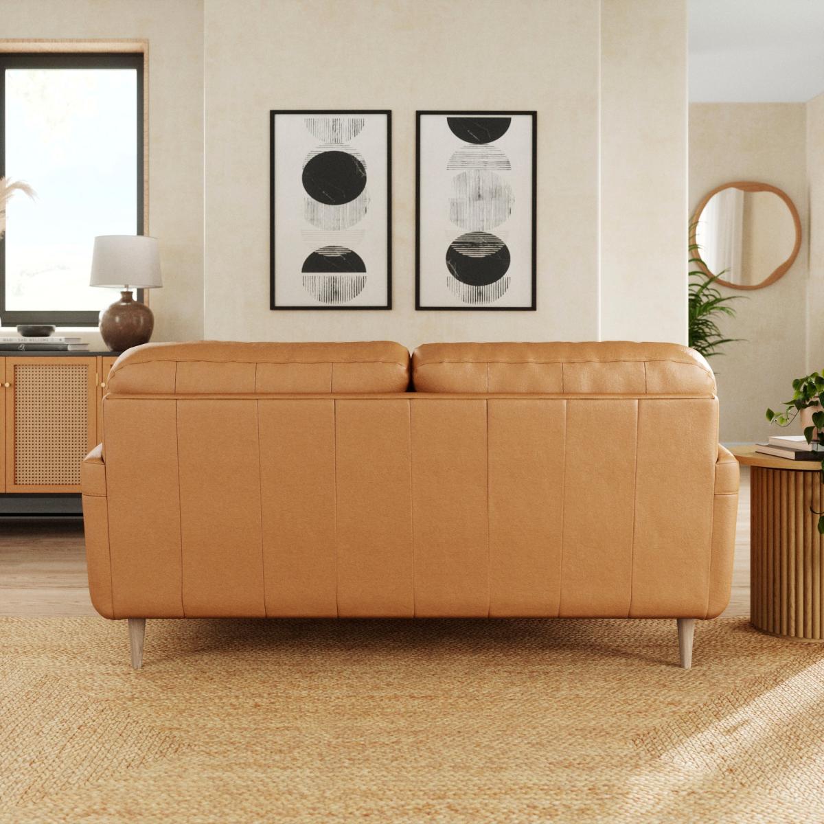 I love the Sven vintage leather three-seater for its timeless appeal and versatility. Its warm, rich tone pairs beautifully with both modern and traditional interiors, making it a flexible choice in a variety of settings. This sofa works particularly well in contemporary schemes where mixed textures and neutral colours are key, but it also adds a touch of sophistication to cosy, eclectic spaces. Practical styling tips include adding cushions in contrasting fabrics or prints to soften the look, and complementing it with a mix of vintage and modern side tables. Its durable leather finish not only ages beautifully but also makes it a smart option for homes with active households.