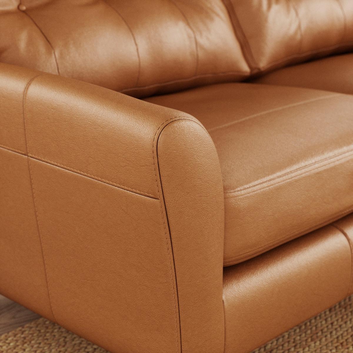 * 100% leather * Textured upholstery finish * Buttoned back cushions * Comfortable foam and fibre-wrap seat This sofa's plush, deep cushions and supportive backrest offer exceptional relaxation, while the vintage leather upholstery adds character and depth. Thoughtfully constructed for durability, this sofa promises years of enjoyment. The elegant profile and tailored finish enhance its sophisticated look, making it suitable for both contemporary and traditional interiors.
