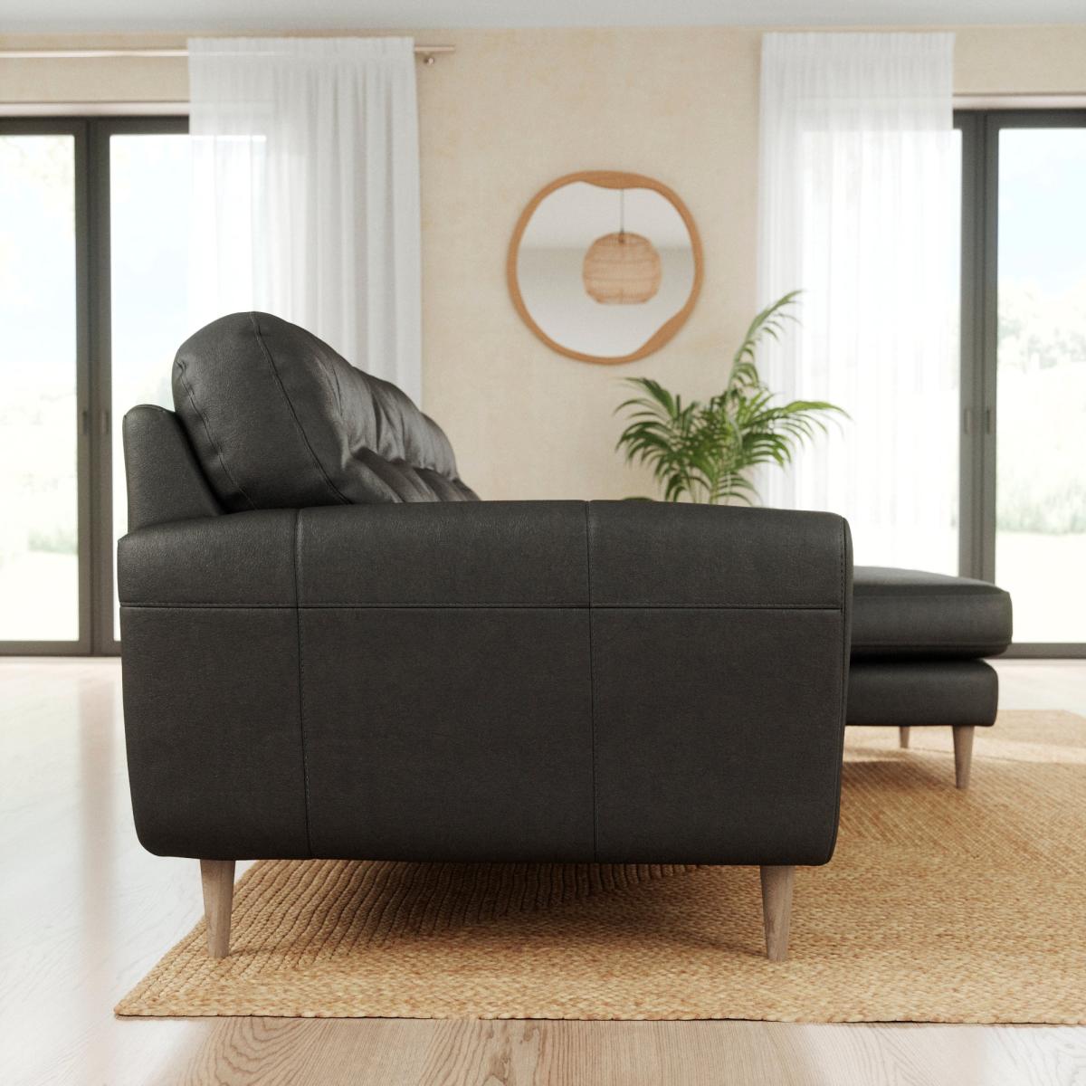 * 100% leather * Textured upholstery finish * Buttoned back cushions * Comfortable foam and fibre-wrap seat Designed for both comfort and style, the Sven chaise sofa provides expansive seating that invites relaxation. The spacious chaise extension offers a luxurious lounging experience, perfect for stretching out after a long day. Crafted with high-quality leather and a sturdy frame, this sofa embodies durability and sophistication.