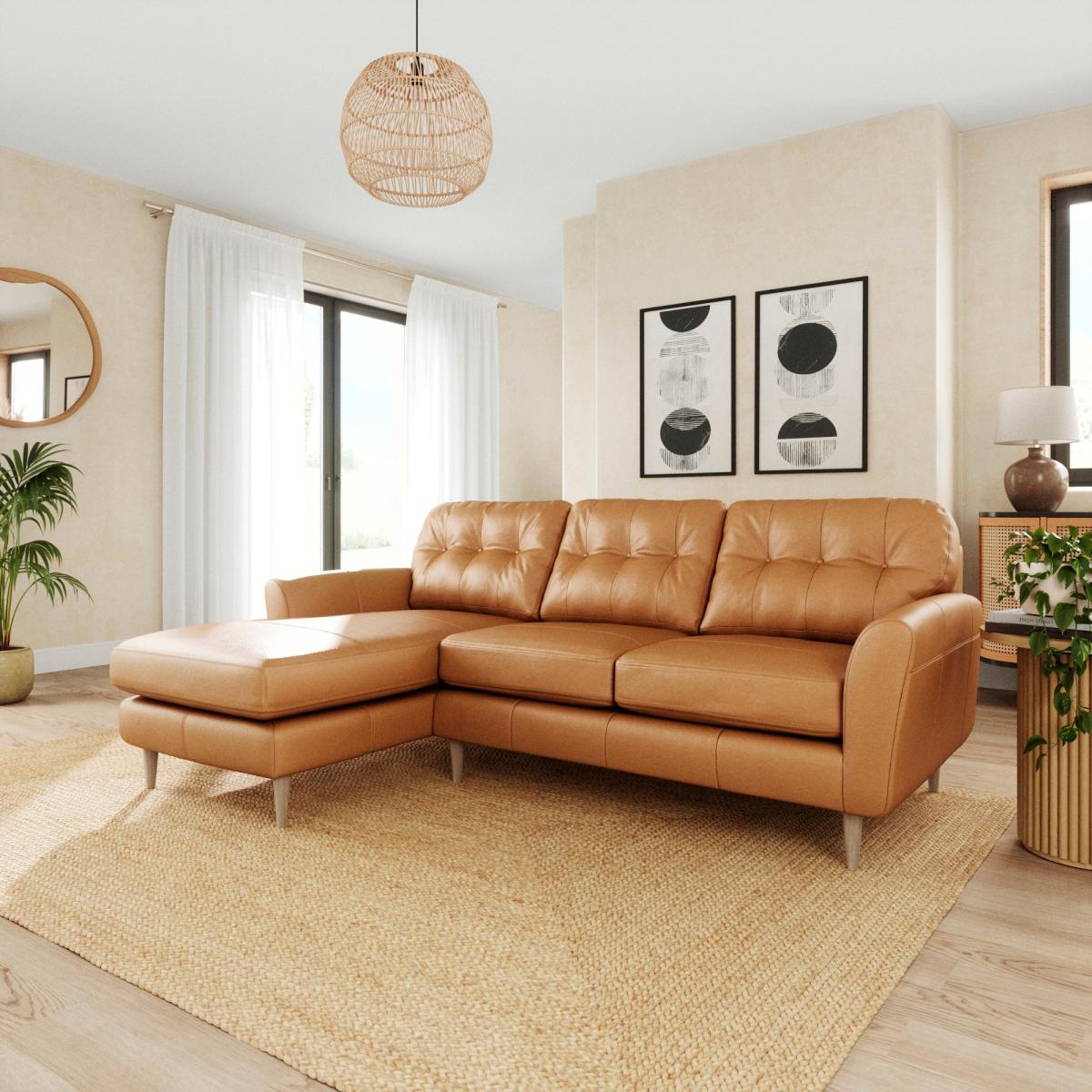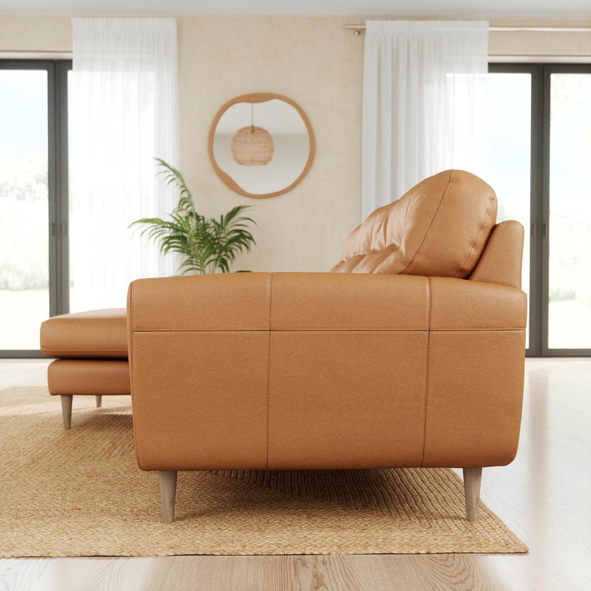 * 100% leather * Textured upholstery finish * Buttoned back cushions * Comfortable foam and fibre-wrap seat Designed for both comfort and style, the Sven chaise sofa provides expansive seating that invites relaxation. The spacious chaise extension offers a luxurious lounging experience, perfect for stretching out after a long day. Crafted with high-quality leather and a sturdy frame, this sofa embodies durability and sophistication.
