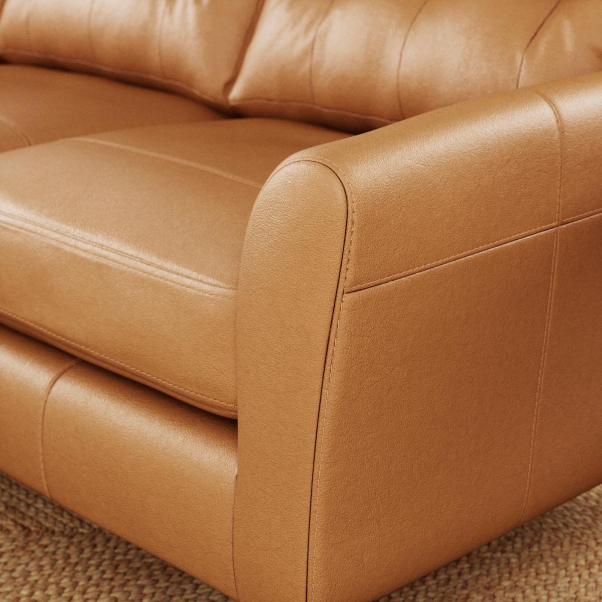 I love this sofa for its timeless appeal and versatility. The vintage leather finish adds a sense of warmth and character, making it a great choice for both modern and traditional interiors. It works particularly well in open-plan living spaces or informal gathering areas, where its generous size can serve as a focal point. To style it effectively, consider pairing it with neutral or earthy-toned accessories, textured cushions, or a contrasting throw for extra comfort and visual interest. Practical tips include placing a soft rug underneath to anchor the space, and positioning table lamps or floor lamps nearby to create a cosy atmosphere during the evenings. This piece is durable, ages beautifully, and lends a welcoming, lived-in vibe to any interior.