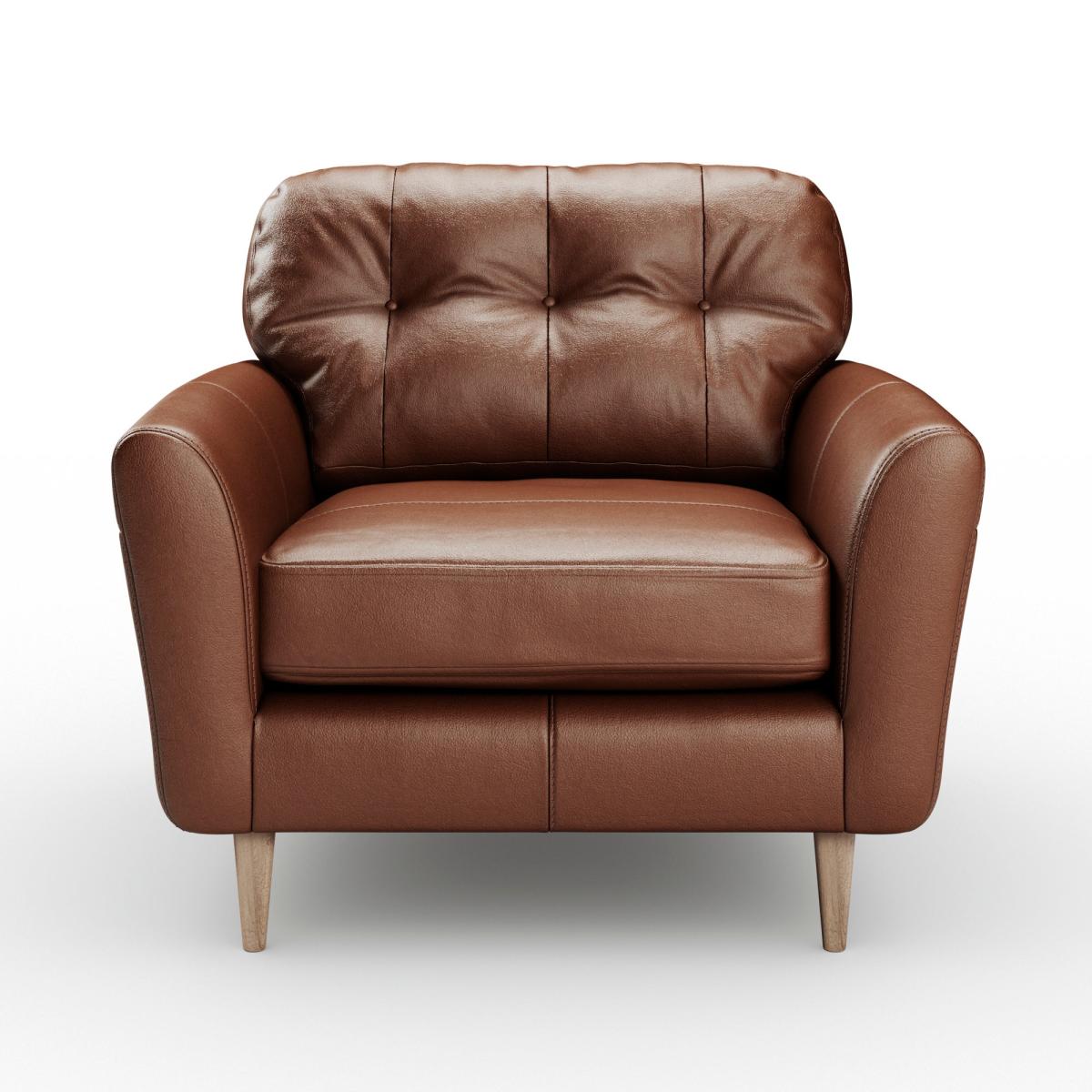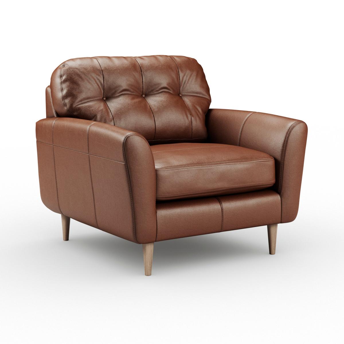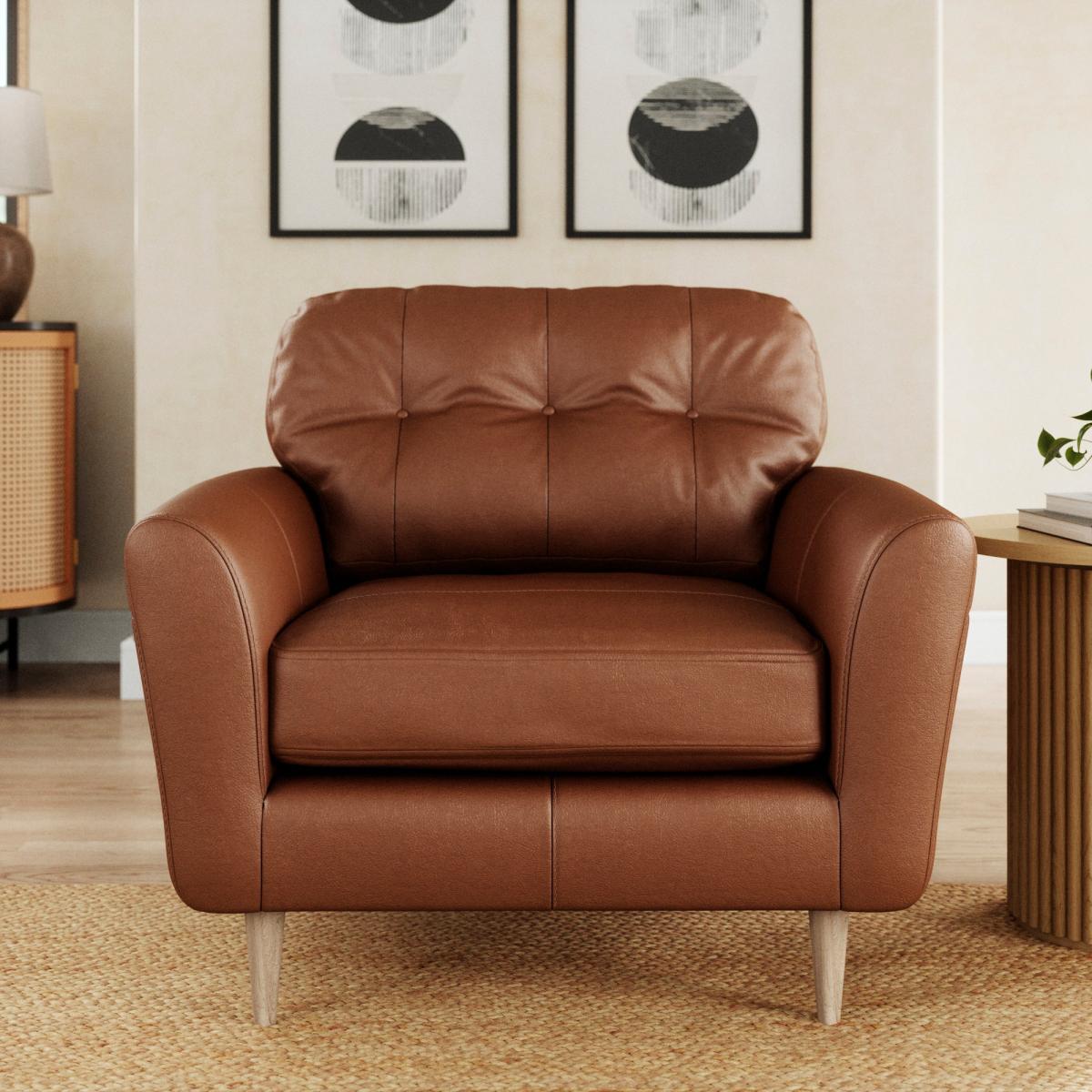 * 100% leather * Textured upholstery finish * Buttoned back cushions * Comfortable foam and fibre-wrap seat * Compact design Designed to provide a cosy retreat, this chair features sumptuous leather upholstery that develops a rich patina over time, enhancing its vintage appeal. The generously padded cushions and supportive frame create an inviting space to unwind, whether you're curling up with a book or enjoying a quiet evening.