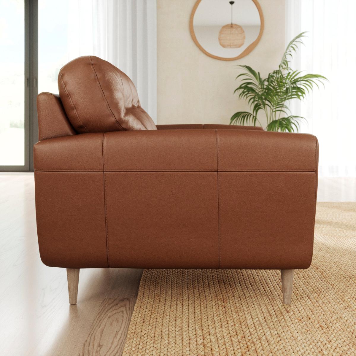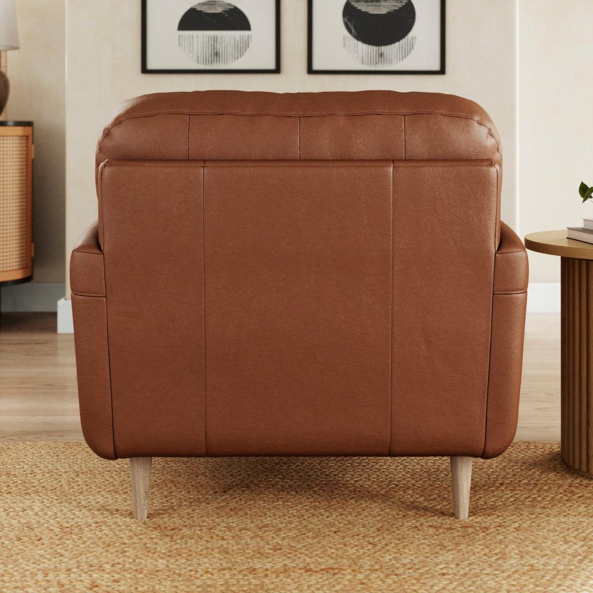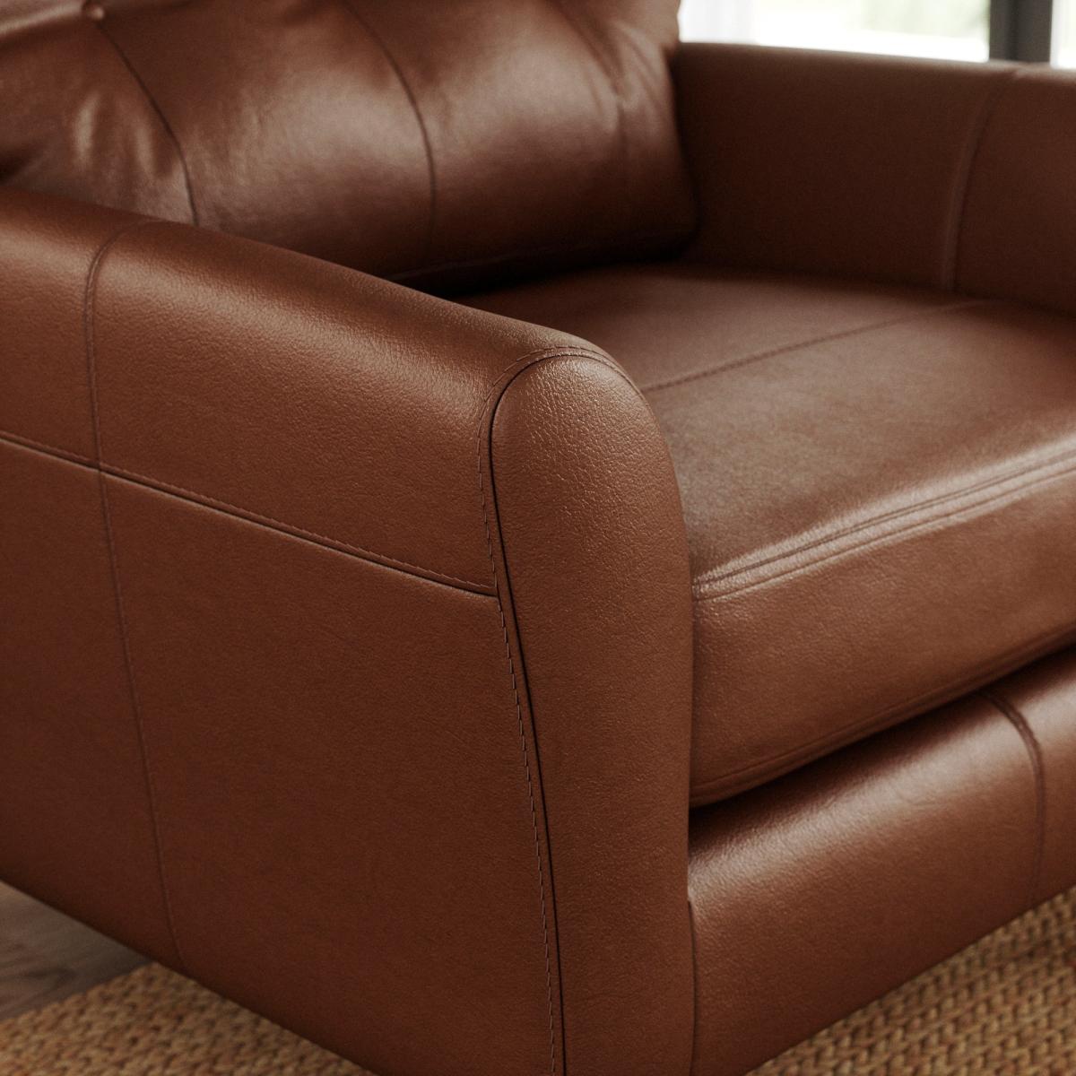 * 100% leather * Textured upholstery finish * Buttoned back cushions * Comfortable foam and fibre-wrap seat * Compact design Designed to provide a cosy retreat, this chair features sumptuous leather upholstery that develops a rich patina over time, enhancing its vintage appeal. The generously padded cushions and supportive frame create an inviting space to unwind, whether you're curling up with a book or enjoying a quiet evening.
