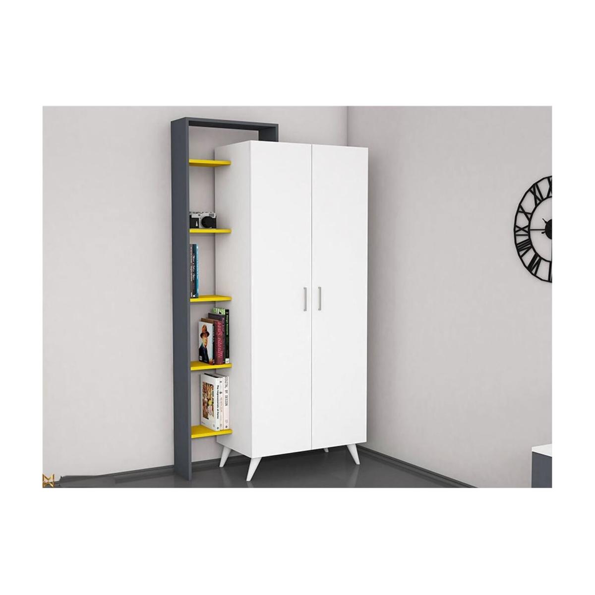 Swan 2 Doors Wardrobe white and Anthracite and Yellow - White & Anthracite & Yellow