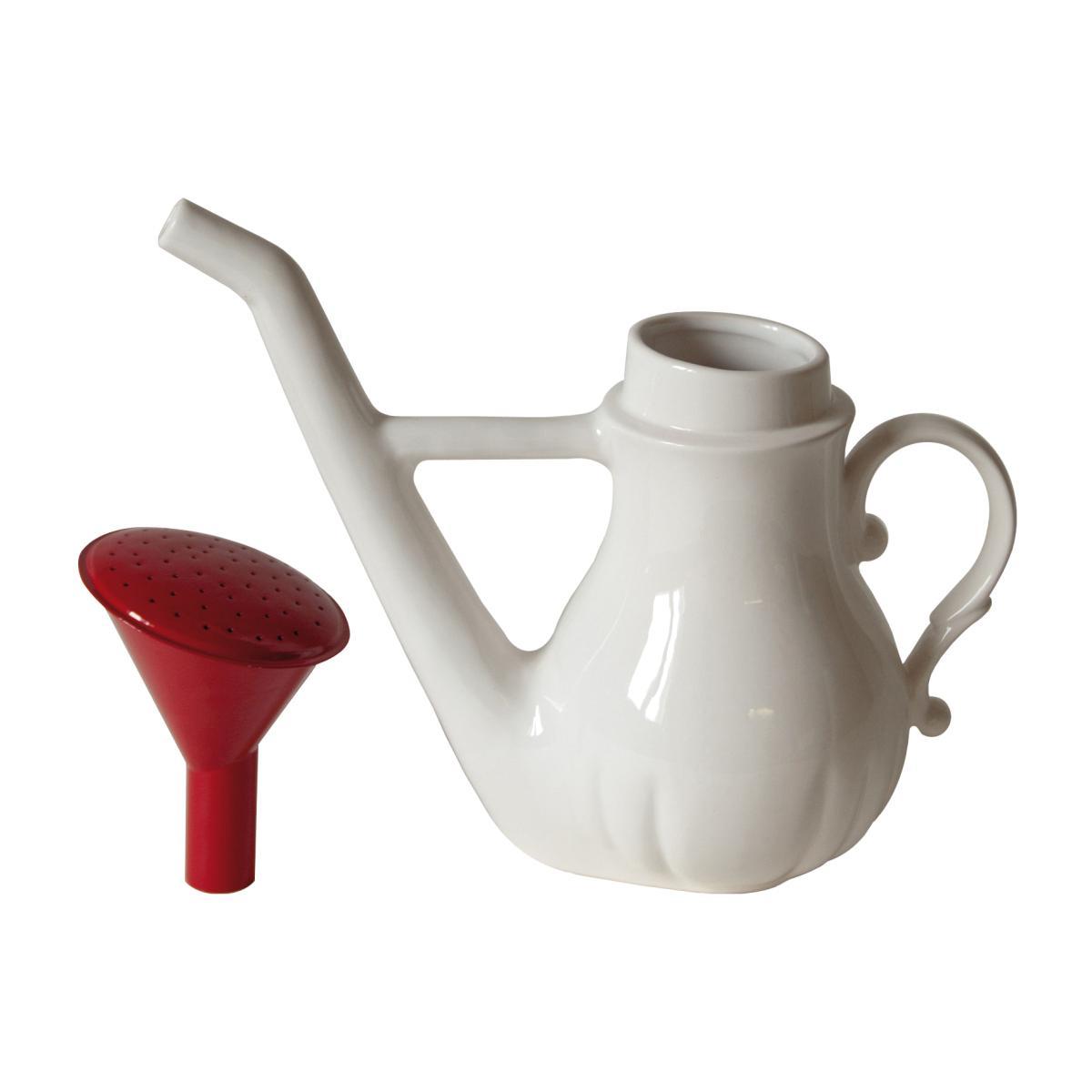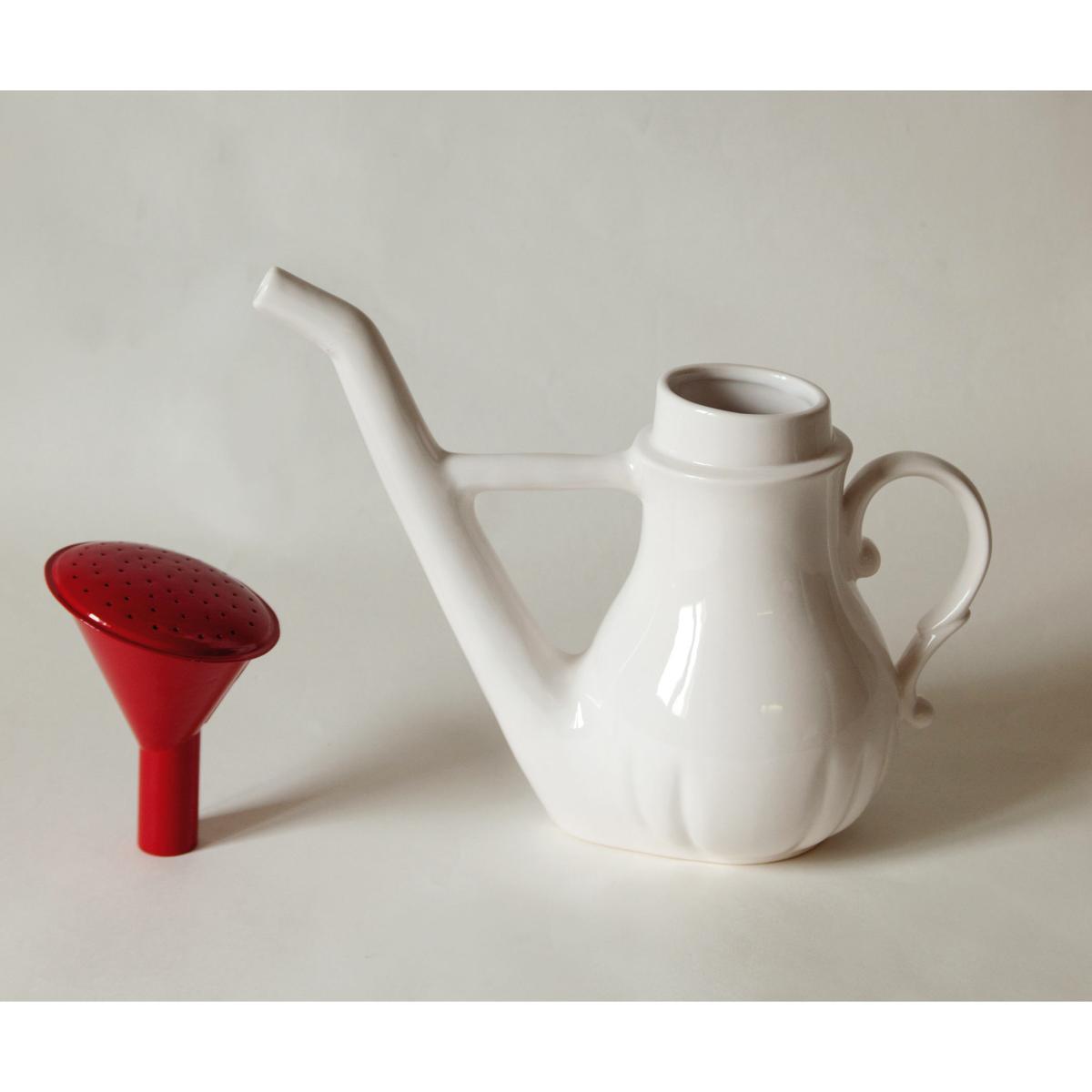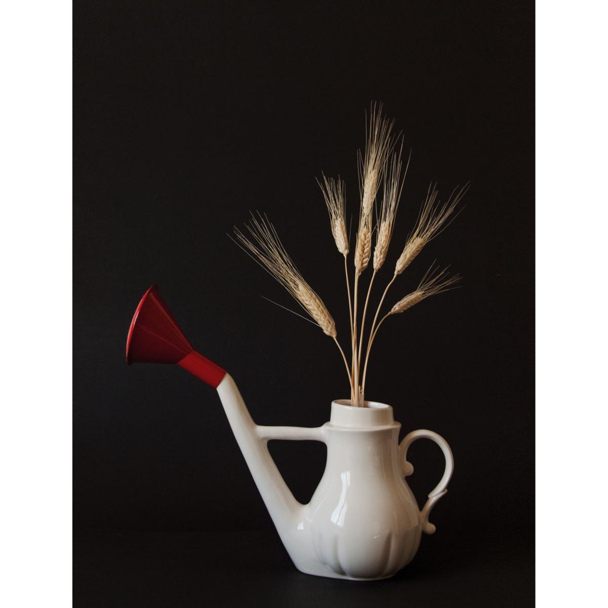 The concept of a ceramic swan came from Antonio's desire to have a watering-can connected to the aesthetic and practical world of gardening. Why not insert into it a glimpse of our daily life indoors, by transforming it into a teapot? After all, watering plants could be compared to pouring tea for friends. Changing the concept and combining the use of two common objects - like a watering can and a kettle is a way for Antonio to magnify everyday life and to put some fantasy and magic into such tenderhearted gestures. The hybrid shape of the tall kettle could be seen as a weird swan and the short one could be seen as a baby elephant with a very long trunk.
