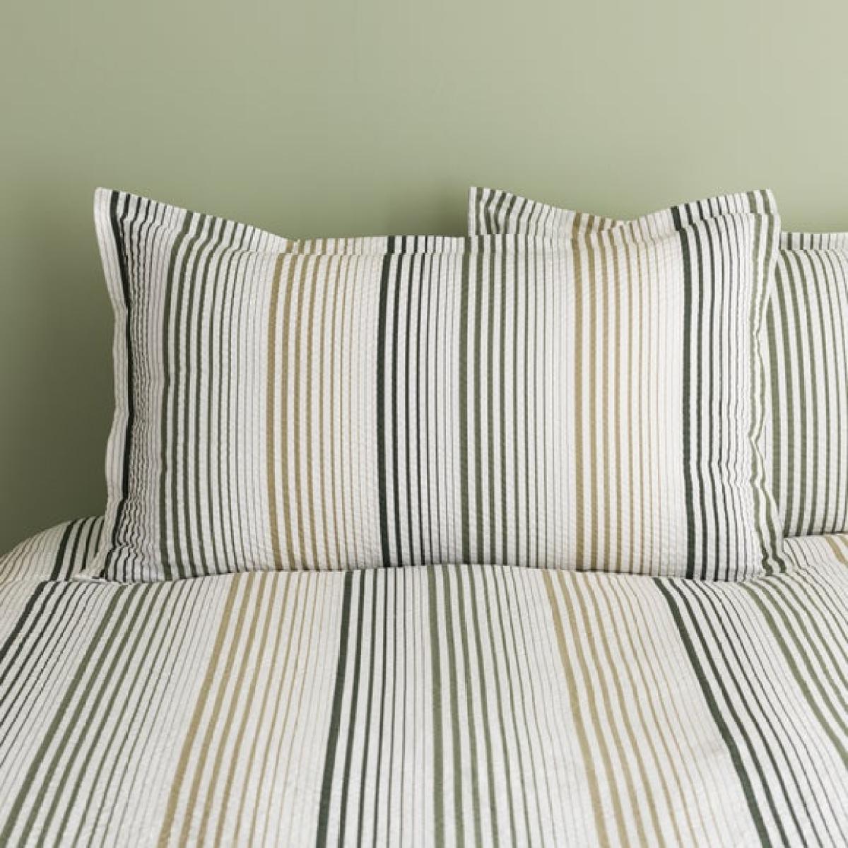 * Contemporary Seersucker Stripe * Oxford Style Pillowcase * Breathable 100% Cotton * Coordinating Bedding Available Introducing the Sway Seersucker 100% Cotton Oxford Pillowcase, where contemporary design meets exceptional comfort. Crafted from 100% cotton, this pillowcase ensures a comfortable night's sleep.