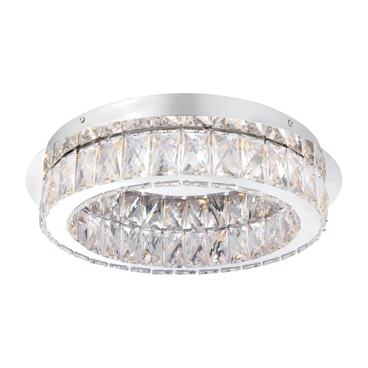 This is an elaborate LED ceiling fitting with a chrome effect back plate supporting a ring of clear faceted beads. An energy efficient product with low maintenance costs. Matching items available