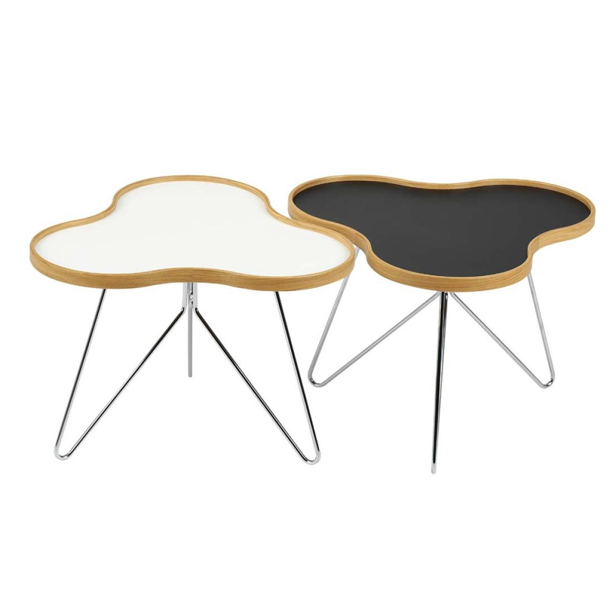 I love this coffee table for its playful yet refined silhouette, making it a versatile piece for a range of interiors. Its unique flower-shaped top adds a touch of visual interest without overwhelming the space, while the black finish and walnut edge provide a modern, sophisticated contrast that works well in contemporary or Scandinavian schemes. The chrome stand adds a sleek, minimalist touch, keeping it light and airy. Practical styling tips include pairing it with neutral-toned furniture to let the table stand out, or draping it with a small stack of coffee table books and a statement vase for an inviting centrepiece. Its generous size means it can anchor a seating arrangement beautifully, whether in a lounge, open-plan living space, or even a stylish home office corner.