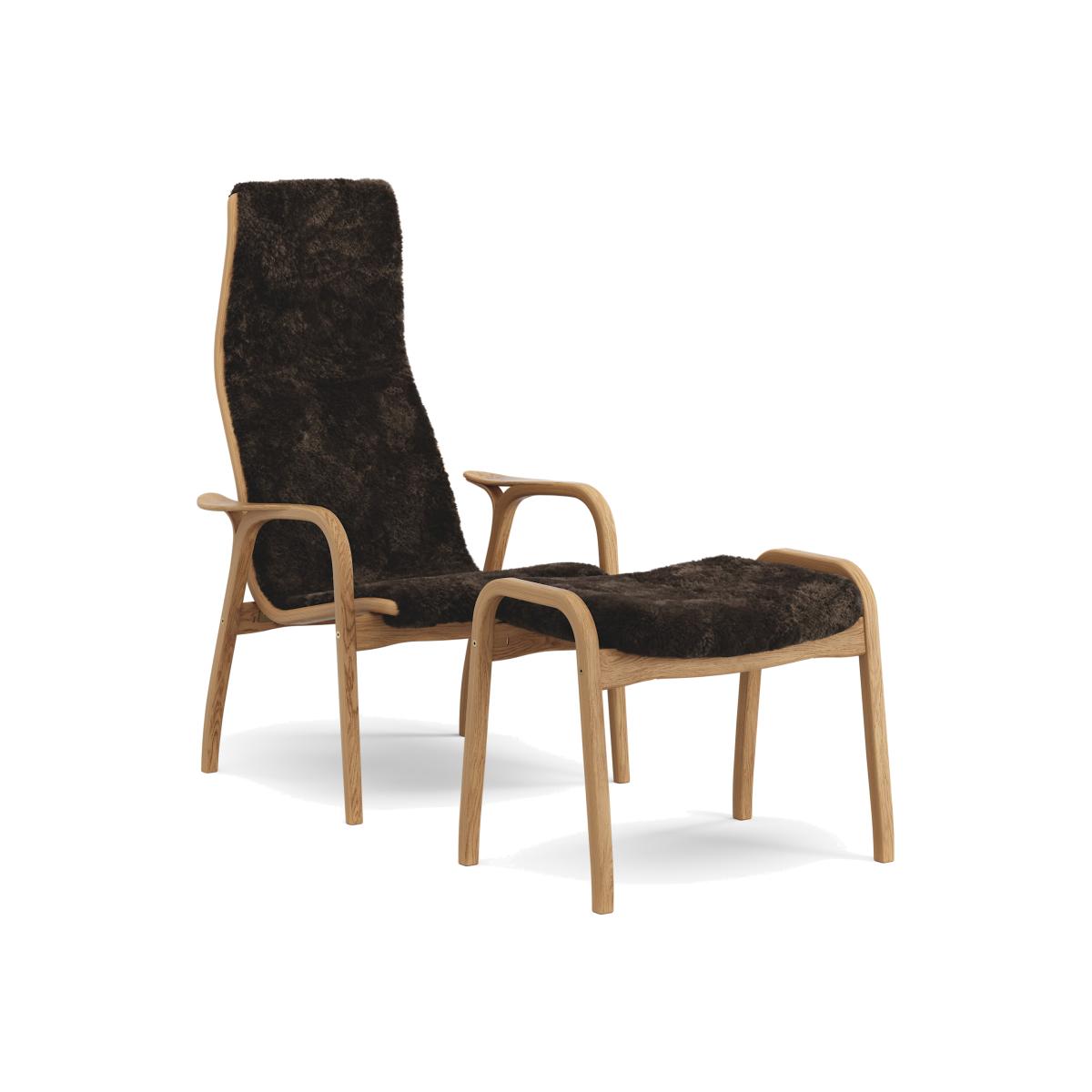 Swedese Lamino armchair and footstool oiled oak/sheepskin Espresso (brown)