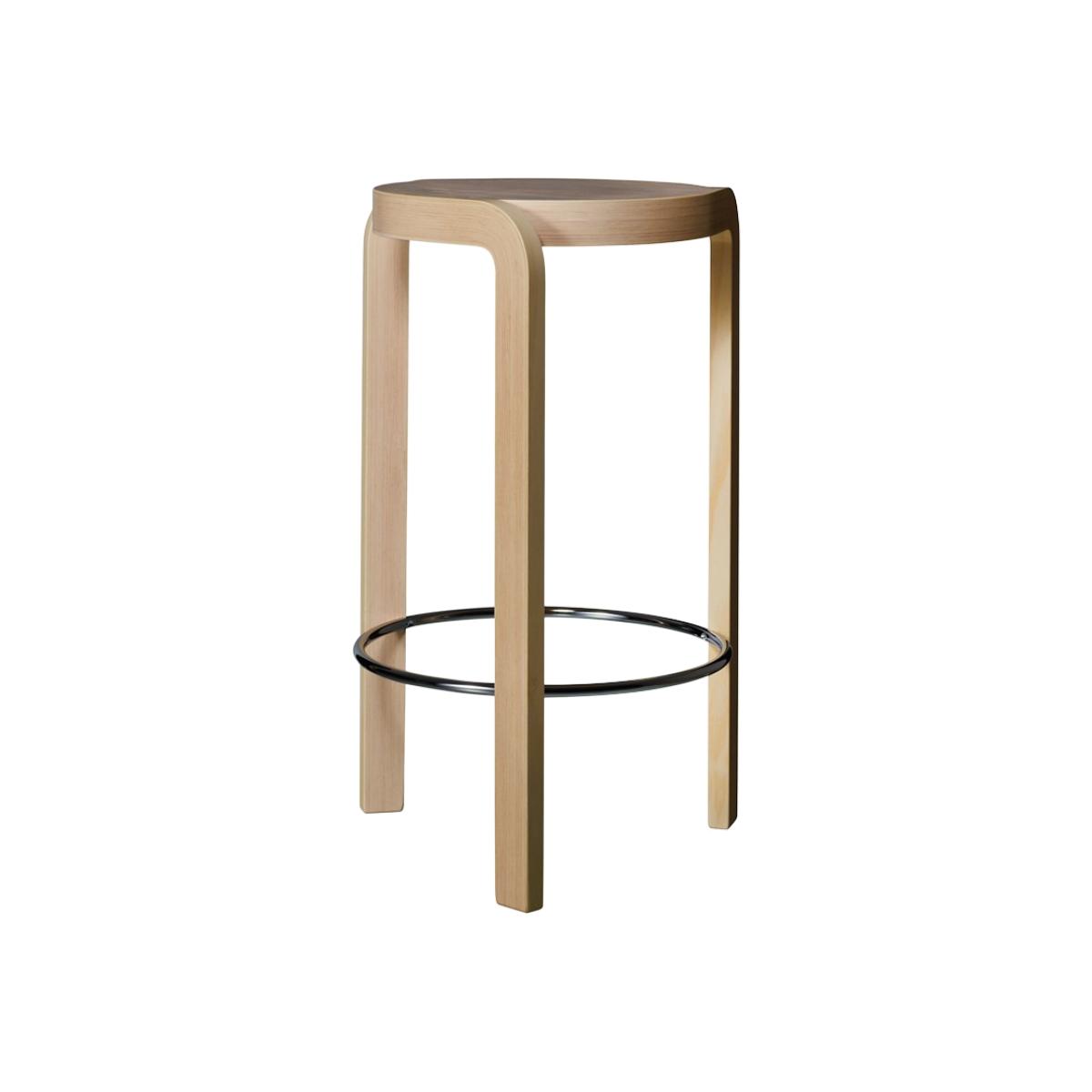 Swedese Spin barstool Ash natural lacquer foot ring in chrome