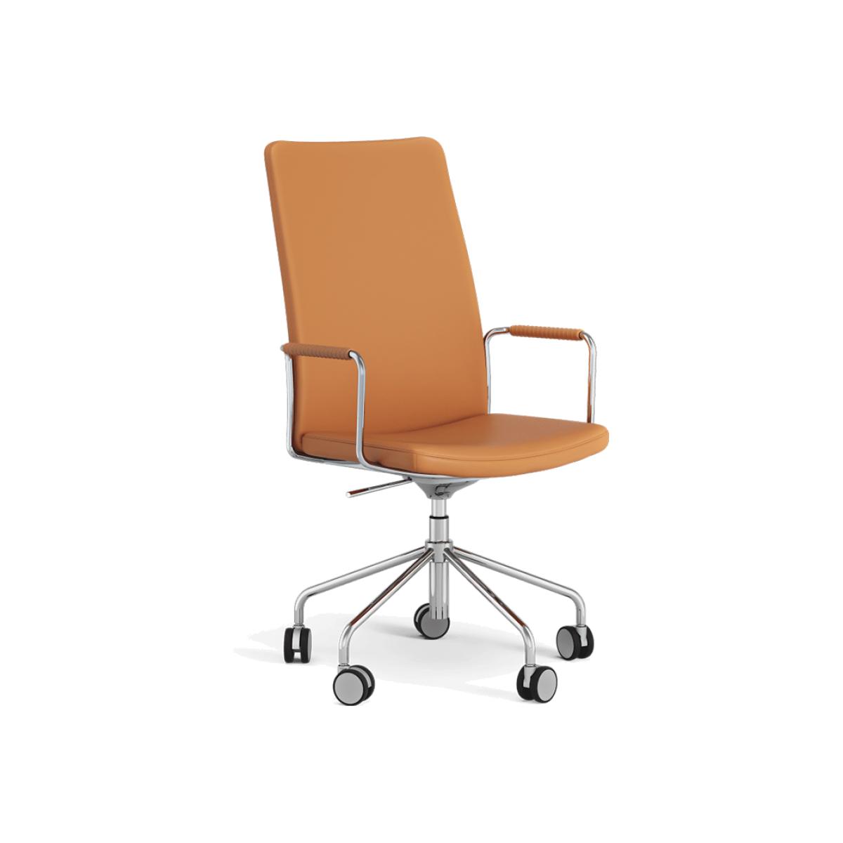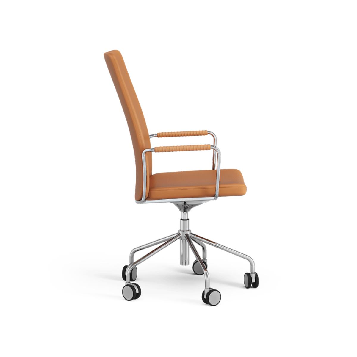 Swedese Stella high office chair can be raised/lowered without tilting Leather elmosoft 54035 cognac chrome adjustable seat height